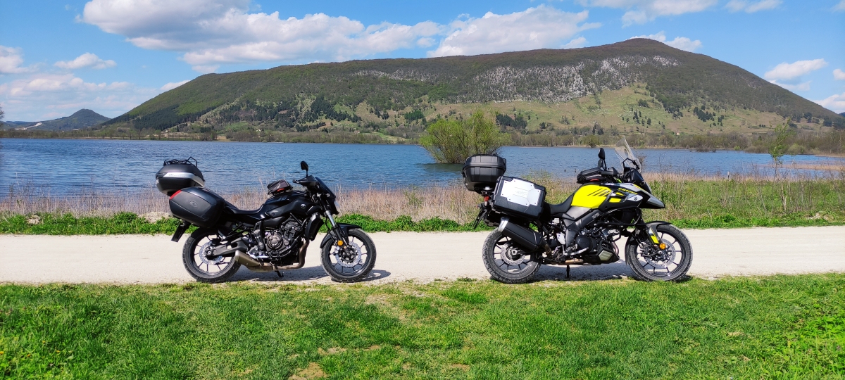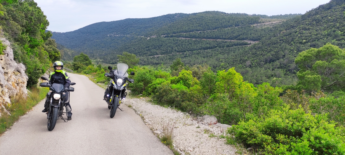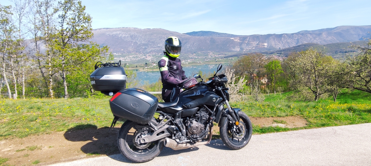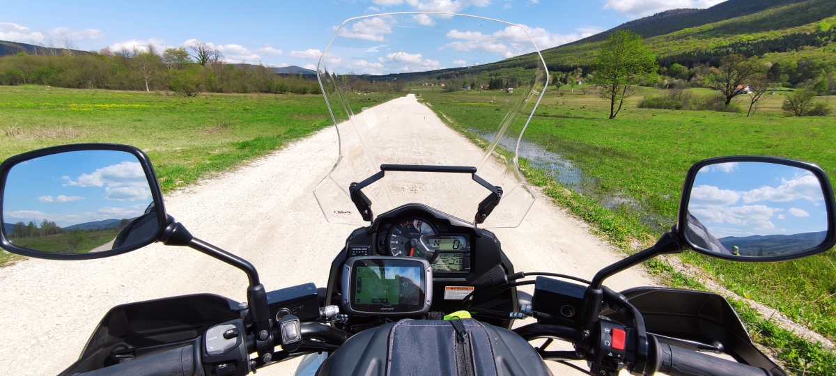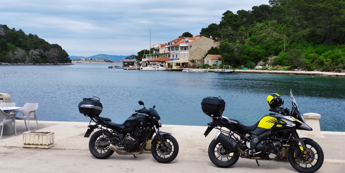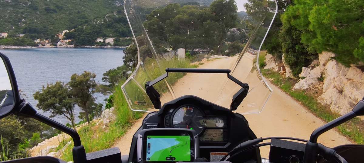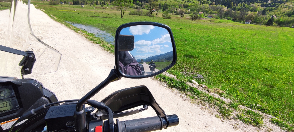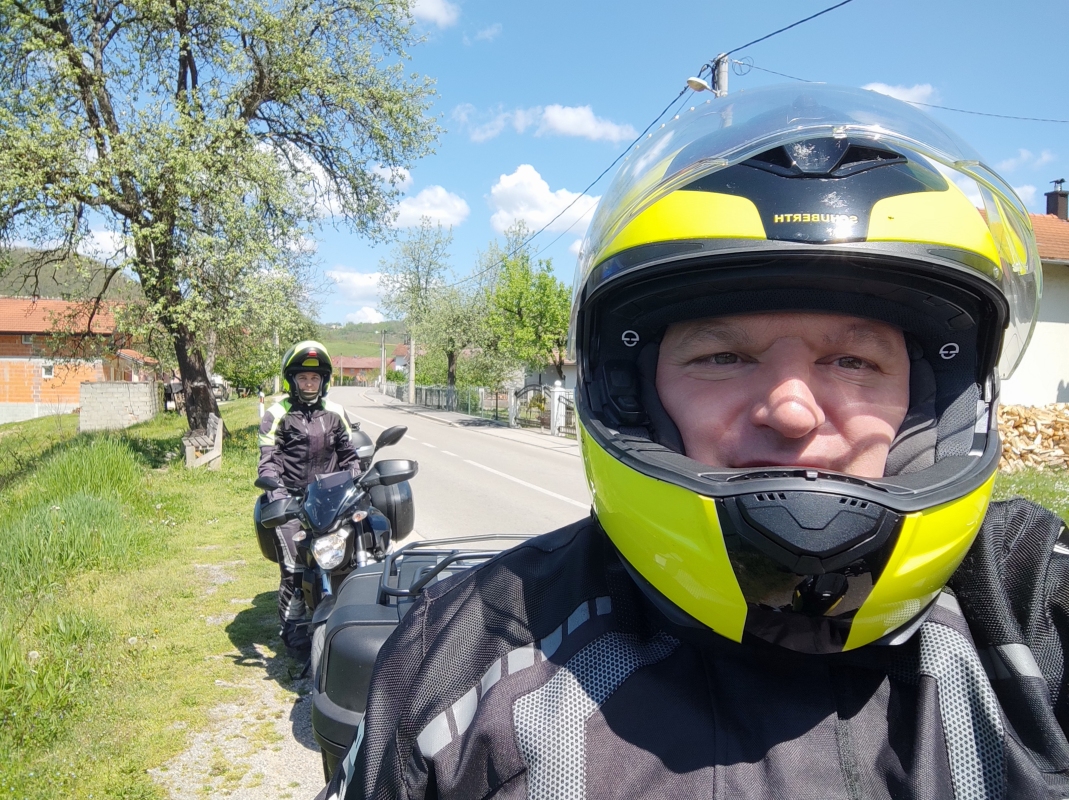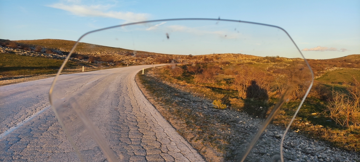 Mitja pravi, da je danes moj dan, da napišem objavo in podam svoj vidik na najino kruzanje.Baje je dobil nekaj zs glede zamolčanih čustev ... Ni mi težko voziti po neasfaltirani cesti, res pa je, da nimam pravega motorja za takšne podvige,...naked, pa še znižan zaradi prekratkih stegnenic je kar koncentracija, da ohranim motor nepoškodovan. ..zato pa piham, kot ekonom lonec, ko me vleče čez štrleče kamne in mlake, katerim ne vidim globine. V križišču navigacija predlaga kolovoz in midva direkt tja kot teličeka,... Začelo se je pred tem nekje ob pol treh po kosilu, kjer sva ugotovila, da imava še 220km do cilja in greva brez ogleda dveh mest, ker nimava časa, saj nekaj je treba pustiti za drugič...in potem zabluziva dve uri in pol za slabih 40 km... Pa vse bi pogledala pa še na zipline bi lahko šla vmes...Bosna nama je lani zlezla pod kožo, veliko je še neodkritega, zato se bova še vrnila...nikakor pa se ne moreva navaditi, da je plačilo s kartico redko možno,...in ko že najdeva gostilno, ki ima na vratih označeno, da sprejema vso plastiko...Mitji nasmešek vzame natakar, ki mu po kosilu reče, da ne gre plačati s kartico, ker nisva gosta hotela...njegov izraz na obrazu je neprecenljiv za ostalo je mastercard.Titov bunker, ki nikoli ni služil namenu...je izjemen arhitekturni dosežek, narejen v tajnosti, čeprav so ga izdelovali/gradili 26 let. Moja naloga je bila nakup kart in ker nekako nisva vedela, da se lahko do vhoda pripeljeva z motorjem, sva ga pustila na zunanjem parkirišču in šla peš do njega in ga zgrešila. Dobro so ga zakamuflirali...Na vidikovac nad Mostarjem sem bila iz neznanega razloga sopotnica na motorju... Uh uh, če še niso izumili vožnjo na dih, potem sem jo jaz...vsak ovinek sem zajela sapo in čakala, ali se bo izšlo. Enkrat svoj motor, vedno svoj motor. Danes sva prevozila celoten otok Mljet, vse vasice, razgledne točke,...razen na makedamsko cesto ga danes nisem dobila,...hm le zakaj. Poenostavljeno povedano je otok Mljet en kup karbonatnih kamnin, na katerem je razporeno ogromno zelenih, cvetočih, drevesnih in grmičastih bilk... Raj za botanike in bicikliste ter tiste, ki želijo mir...Evo to je to, grem spat in novim dogodivščinam naproti...