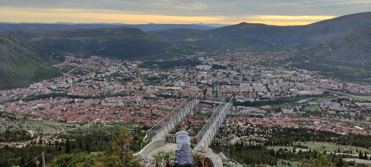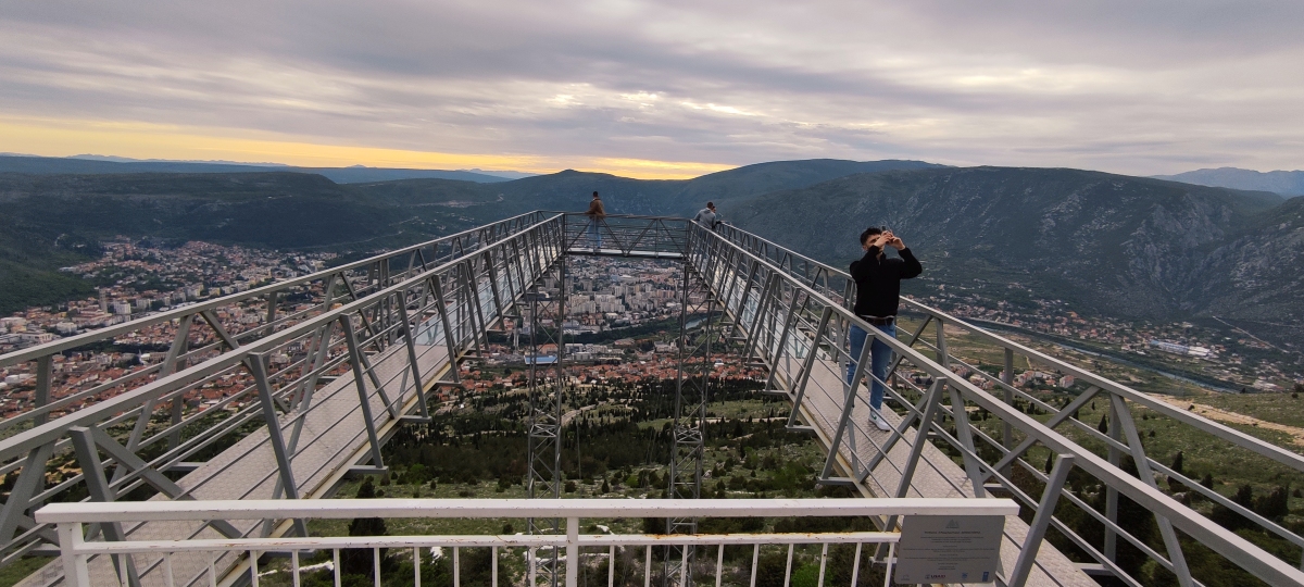 Neznano kam - 2. del Po včerajšnjem vratolomnem kolovratenju po nepremišljeno izbranih cestah, se je dalo prav kvalitetno zaspati.Jutro je bilo obsijano s soncem, pogled iz balkona veličasten. Hitro na zajtrk, kjer sva srečala koga drugega, kot najina soseda Finca. Ob zelo bogatem zajtrku smo zopet izmenjali nekaj besed na temo potovanj in nadaljnih načrtov. Onadva ga pospešeno mahata v smeri Grčije, midva pa kot fliper kugla, malo levo, malo desno.Prvo sva se zapeljala malo naokoli Ramskega jezera, pol pa gas do naslednjega cilja. Danes sva se namenila v Konjic, na ogled skrivnostnega Titovega bunkerja, ki je res impozanten objekt. Ljudje so res imeli domišljijo, sredstva in cilj. Le tako lahko nastane kaj tako kompleksnega in veličastnega.Sprva sva mislila, da bova sama, pa sva se motila. Prihrumela je velika skupina motoristov, pa še avtobus in veliko posameznikov. Ljudi je bilo ogromno in v glavnem sami Slovenci. Ogled bunkerja je trajal dobro uro in pol, prijazna vodička je bila kar podkovana s podatki in razumevanjem situacije. Malo sem jo potipal na temo komunikacij, anten, pa mi je kar hitro razložila, da so bile komunikacije preko RR linkov itd,...Po ogledu bunkerja sva si zaželela privoščiti kosilo. V prvem lokalu totalno nezainteresiran natakar, kar me je popolnoma odbilo. Greva naprej, najdeva naslednjo na oko primerno gostilno. Za začetek čakava kar dolgo, kar me niti ni preveč zmotilo. Odločil sem se za čevape, saj me je Gogi že včeraj zasliševal o njih. Ko sem jih dobil, mi je bilo žal, da sem sploh kaj naročil. Lepinja trda kot kamen, ko si jo v ustih malo zmehčal, je postala čigumijasta. Karmen je dobila malo bolje pripravljeno hrano, pa še vedno ne tako, kot bi moralo biti ali bi vsaj lahko bilo. Zadnji šok sem doživel, ko sem želel plačati s kartico, pa mi reče, da ne morem, ker nisem gost hotela. Res me je skoraj kap. Na hitro sva zapustila to gostilno in gas proti Mostarju.V smeri Mostarja je kar nekaj del na cesti, tako sva bila več na levi špuri kot na desni. Tako sva tudi srečala policijsko vozilo, na katerega sva šla čelno in se mu umaknila v kolono. Na hitro me prešine misel, da bova dobila kazen. Verjetno naju sploh ni videl, ker je med vožnjo brskal po telefonu.Takoj po prihodu v Mostar, sva se odpravila na razgledno točko. Tabla Vidikovac mi je vedno všeč, še posebej, če tja vodi lepa cesta. En motor sva pustila pred motelom, z mojim pa sva se peljala na hrib. Res točka, vredna obiska.Po razgledih z višav, sva se vrnila v staro mestno jedro. Lani nama je ostalo še par stvari za pogledati, pa sva to naredila danes. Na koncu sva se vrgla v kafano, naročila pijačo in opazovala okolico. V kafani naročiva pijači, jaz pivo, Karmen pa Campari tonic. Čez nekaj časa se vrne natakarica in mi začne razlagati, da Camparija nimajo. Jaz jo začudeno gledam, kaj to meni razlaga, jaz sem naročil pivo, o tem naj se pomeni s Karmen. No, saj sem pol dojel, da ji moram odobriti drugo pijačo.Ob opazovanju okolice mi pred oči pade Danijela s familijo. Če se že nekaj let nisva srečala v Sloveniji, zakaj pa se ne bi v Mostarju, a ne? Malo smo pokramljali, spili eno pijačo in vsak po svoje naprej. Prav pasalo je.Kam naprej? Neznano kam.