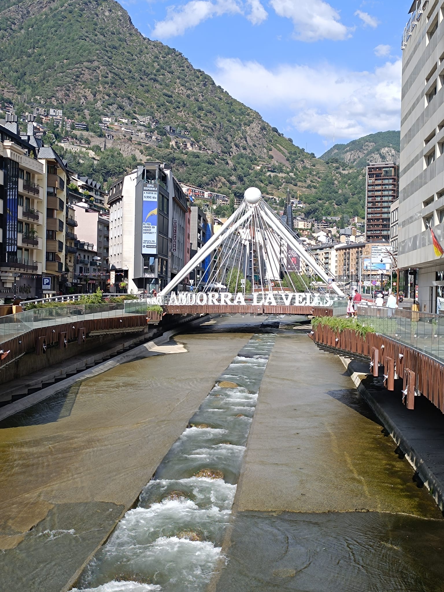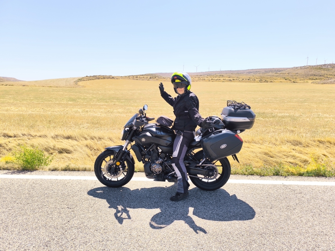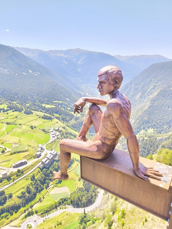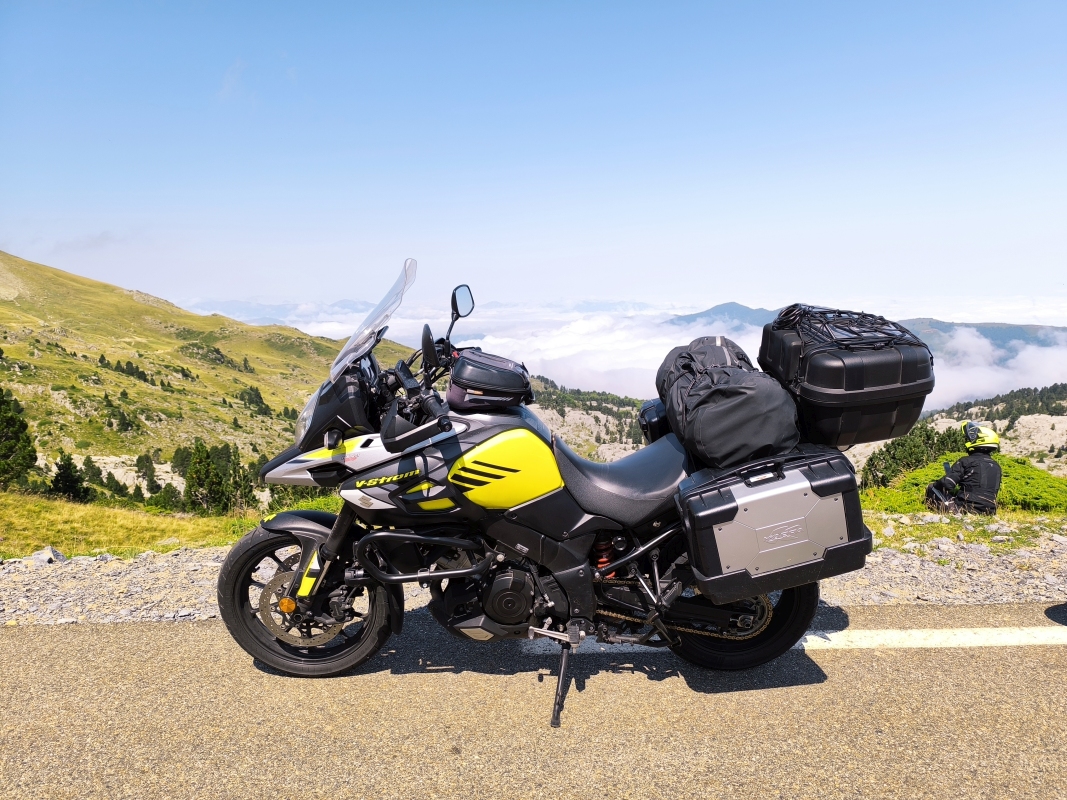 "Na zahod" 5.dan Tokrat boste od mene (Karmen) dobili dnevni doživljaj najinega potovanja. To, da sobe niso klimatizirane velja tudi za Andoro, kar otežuje dober spanec... Tukaj je sončni vzhod šele 9.43, saj šele takrat sonce pokuka izza visokih gora. Ker med vožnjo poslušam zvok ketne, ki nabija po nečem, sva se odločila, da obiščeva servis. Najdeva najbolj primernega, Yamaha servis takoj za krožnim. Moja španščina v mehanični delavnici je bolj klavrna, saj si z 'mi corason', 'te kiero' in 'Jose Armando' ne pomagam kaj dosti. Na srečo je tam zaposlen en Potrugalec, ki bi ga gladko zamenjala z Britancem... zaradi naglasa, ne videza. Fantje postavijo motor v dvigalo in ga spustijo v servis. Andora je gorata dežela in večina stavb se naslanja na kamen. Torej je vse v nadstropjih, omejeno s prostorom, ampak vseeno jim je uspelo, z meni zelo lepo kamnito gradnjo, ustvariti zelo posebna/drugačna mesta. V glavnem v kakšnih 10. min je bil motor spet v vidnem polju, računati mi niso hoteli, naj širim dober glas so rekli (meni se zdi) eres muy ermosa...saj je to to, a ne? Dan sva namenila raziskovanju Andore, ki kljub svoji majhni površini (za predstavo cca občina Tolmin ali občina Kočevje) nudi čudovite razglede. Promet je tekoč, ceste so odlične, prelazi so bistveno manj obiskani kot naš Vršič, ljudje prijazni, meni so itak všeč, ker skozi čebljajo v španščini. Jaz pa samo 'Si, si, sinor. Bila sva na razgledni ploščadi, kjer se gnete veliko ljudi, saj tam sedi ogromen kip Mislec, ki ima zavidanja vreden razgled na dolino. Predstavlja mir in refleksijo, kar je v skladu s slikovito naravo Andore. Nadaljevala sva na prelaz, ki naju je prevzemal z vsakim ovinkom. Ker sva bila že malo lačna, sva v glavnem mestu povprašala, kje imajo kaj dobrega in naju je prijazna mladenka poslala v Bikers friendly bar. Le zakaj ravno tja... Ni nama bilo žal, imeli so okusne tapase, enega klasičnega-iberian ham in kruhke s paradižnikom in nekaj po njihovem priporočilu, zelo svežega okusa, burata, paradižnikova marmelada, bučna semena, pinjole, rozine,...sploh ne znam opisati, ampak je bilo za desetko. Ker je bilo v mestu zelo vroče kot v kakšnem kotlu, sva mestni sprehod spremenila v mestni skok do tone in pol težke Dalijeve ure (Plemenitost časa) v centru in potem na lov za prenočiščem. Zapustila sva Andoro in v Španiji iskala kamp, prvi je bil popolnoma zaseden, drugi je imel prostor za naju. Mislim, da bo kamp dobra odločitev, saj imava prezračevanje zagotovljeno, kar v sobah ni nujno. Še skok v bazen, da shladiva teleščka in dovolj za danes.