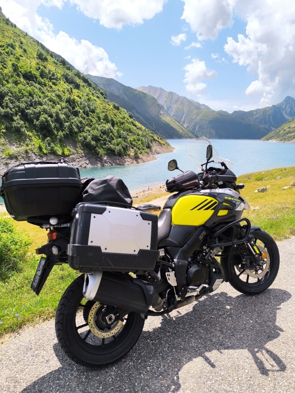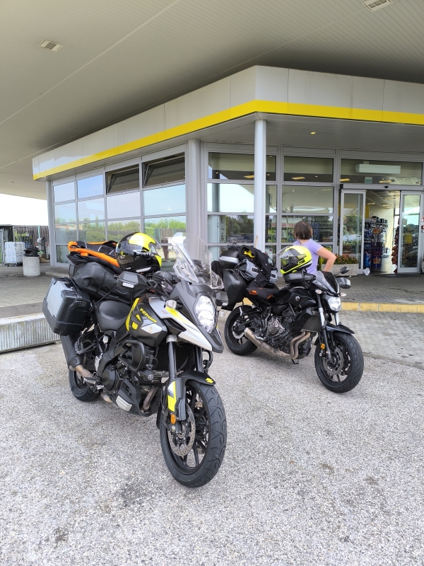 "Na zahod" 17. dan Pa je napočil dan, ko na navigaciji pritisnem tipko "Vožnja domov". Po sladkem italijanskem zajtrku sva na hitro pospravila in se odpravila na pot. Ker nisva tankala zvečer, je to bilo to eno prvo jutranjih opravil na poti. Sama pot proti domu ni bila kaj posebnega, saj je do doma bilo dobrih 400km. AC, srednji tempo in gasa. Na začetku so naju spremljali tudi oblaki, posledično je bila temperatura okoli 30°C, kar je bilo popolnoma sprejemljivo. Zadnjih 100km pred mejo, so se ti oblaki razblinili in je lepo zakurilo na konstantnih 36°C. Naredila sva en postanek, kjer sva se osvežila in ohladila. Ko se počasi vračaš domov, te prevzame tisti občutek veselja ali pa neke radosti. Kakorkoli je lepo potovati, spoznavati nove kraje in ljudi, tudi doma je zelo lepo. Takoj čez mejo sva nalila gorivo, saj je tudi kar nekaj cenejše. Dogovorila sva se s Hano za pijačko in oskrbo z domačim paradižnikom. Nekje sredi dneva mi je mama poslala fotografijo dnevne domače bere iz vrta. Itak nama je naredila lušte, in pol sva tuhtala, kako priti do domačega paradižnika. Posledično je Karmen vprašala Hano, če imajo kaj viška in sva dobila. Hvala Hana. Tudi brez pikov insektov ni šlo. Ko sva nalila gorivo in bila že dogovorjena za prav vse kar sva potrebovala, se Karmen zadere, da jo je nekaj vsekalo čez hlače. Takoj zaustavljanje, slačenje ob cesti in nudenje prve pomoči. Kot prvo pomoč za to nevšečnost uporabljava tabletko aspirina. Na mesto pika hitro malo sline in gor tabletko, da se začne razkrajati. Včeraj sva pustila še drobce Aspirina na stegnu, dala preko fajšter in je bila kmalu k nova. Ker smo se s Hano zaklepetali, sva prišla domov kaki dve uri kasneje, kot je sprva zgledalo da bova. Pa nič ne de, čas preživet s pravimi prijatelji, ni nikoli stran vržen čas. Kot vedno, ko parkirava doma, se objameva in si poveva, da sva doma. To je postal kar nek ritual. Večer je hitro mineval. Pralni stroj je bil takoj v akciji, pa ne samo enkrat. Glavnino sva uredila včeraj, danes je ostalo še čiščenje motorjev, pa še tudi nekaj pranja. Ni še vse 100%, tudi počivati je treba, vsaj malo, ker jutri greva oba delat. Pa če povzamem to potovanje, ... Na hitro rečeno, bilo je lepo, krasno. Prevozila sva lepe ceste, prelaze, kraje, bila v kontaktu s prijetnimi ljudmi. Z nekaterimi italijansko, francosko in špansko govorečimi ljudmi, je bila komunikacija tudi težavna. Pa smo malo mahali z rokami, kimali, se pačili in je šlo. Kar se tiče varnosti v prometu in na splošno, nisva imela nobenih težav. Nobeden od naju ni imel potrebe po zaviranju v sili. Francozi se lepo umikajo na cesti, ko jih dohitiš (vsaj velika večina), prehitevanje gre gladko. Je pa res, da v krožiščih niso tako prizanesljivi, tam ne popuščajo. Tega se hitro navadiš. Španci niso tako popustljivi, niso pa nevarni. Nekako se mi zdi, da so bili naši zahodni sosedje najbolj agresivni glede prometa. Vedno sva vozila v popolni opremi, kar je pri visokih temperaturah zelo naporno in na nek način nevarno. Nekako se zelo trudiva zaščititi proti mehanskim poškodbam, posledično pa se tem dejanjem približujeva toplotnemu udaru. Zdaj pa bodi pameten, a je boljše brez airbaga in jakne, pa si bolj zračen ali pa bolj kuhati in v kolikor do česa pride, si bolj zaščiten??? Veva, idealno ne bo nikoli. Nastanitve so bile dokaj solidne. Res je, da človek pogreša v vročini klimatsko napravo, ki je veliko krat v sobah ni bilo. Pač, rečejo ti, da je vroče. Ja super, to že vem. Kako pa se naj ohladim??? Kampiranje je bilo nekako zelo sprejemljivo iz dveh razlogov. Prvi razlog je ta, da je šotor zračen in ponoči se je glih prav shladilo in se je super spalo. Drugi razlog pa je tudi razmerje cen soba/kamp. Če se prav spomnim, kampi niso nikoli presegli cene 33€, kar je nekako polovica ali pa tretjina cene sobe (ki nima klime). Hrana in pijača, ... Lačna nisva bila, žejna pa tudi ne. Jedla sva lokalno in tudi kaj industrijskega. Definitivno sem prisegal na lokalno pivo. Hrana nama ni povzročala nobenih prebavnih motenj, kar je bilo super. Res je tudi to, da sva spila ogromno Coca cole, ki kar lepo drži želodec v stabilnem stanju. No, res je tudi to, že nekaj časa ne jeva kruha, na potovanju ga jeva in sva ga verjetno pojedla za celo leto v naprej Na potovanju se je poznala tudi utrujenost zaradi vročine. Lani, ko sva vozila na Nordkapp, je bilo vsaj meni veliko lažje, ker je bilo hladneje. Če primerjava naju, je letos imela Karmen več energije, kot jaz. Res je tudi to, da sem se zelo boril z bolečinami v nogi, da mi je to vnetje išiasnega živca dodatno oteževalo potovanje. Pomagal sem si s protibolečinskimi tabletami, protivnetnimi tabletami itd. Bili so dnevi, ko je bila hoja na 100m težava, bili so dnevi, ko nisem mogel sedeti na stolu in sem se med obrokom hrane sprehajal, itd. Mah, vsega je bilo. Edina sreča je bila, da edino na motorju me ni sekalo po celi nogi in je bila noga funkcionalna, da ni imela bolečina vpliva na varnost. Še zdaj ni vse ok. Bo pa, ne popuščam. Stroški, pojma nimava, ker ne seštevava. Lahko rečem, da niti enega prelaza ni bilo potrebno plačati. V Avstriji je to malo drugače. Italijanske cestnine so dražje od francoskih. Kar se tiče cestnin, naša vinjeta je drobiž proti dnevnim cestninam v tujini. V 17. dneh sva prevozila skupno 5139km, od tega nekaj več kot 3000km po lokalnih cestah in prelazih. Yamaha in Suzuki sta delovala brezhibno. Eno šponanje verige, to ni nič takega. Na Yamahi se je razletela šipica na sprednjem žmigavcu, ne veva zakaj, ampak se je Glavno, da je žarnica ostala cela in je veselo utripal do doma Verjetno sem v dnevnih opisih poti in dogajanj zajel dovolj, da ste si znali predstavljati, kje sva in kaj doživljava. Ker domišljija nima meja, si je lahko vsak po svoje pričaral najino potovanje. Zato se mi zdi vredno pisati, prilepiti kako sliko ali filmček, da s tem komu polepšam 