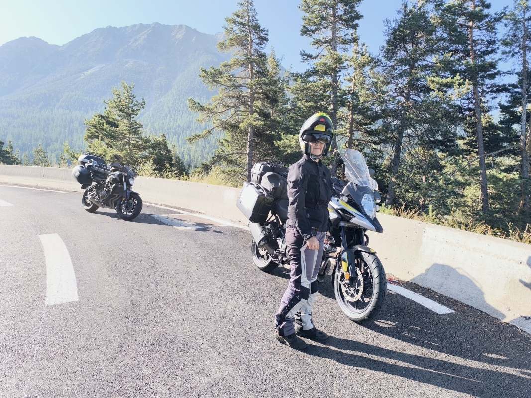 "Na zahod" 1. dan Pozdravljeni, zopet bo nekaj dni branja. Za nekatere bo to malo popestritve, za nekatere dodatno obvestilo na FB, da sem nekaj napisal. Vzami ali pusti, kakor želiš. Tokrat sva se odpravila na zahod. Če bi bilo tukaj slabo vreme, kam bi šla? Logičen odgovor je "vzhod". Ne me spraševati, kakšna je načrtovana pot, ker je ni. V navigacijo je nametanih ogromno zanimivih točk, povezovala jih bova čisto po občutku in počutju. Do kod greva? Pojma nimava. Tokrat je res čisto na free, kaj bo, pa bo. Včeraj sva vse spakirala, robe kolikor hočeš, s seboj imava tudi komplet za kampiranje. Včeraj sem tudi zamenjal gume, v zadnjem trenutku. Nekaj sem se obotavljal glede tega, še sam ne vem čemu. Hvala Maya, da si jih potegnila iz zaloge, hvala Tetka Irh za hitro montažo. A ni fajn imeti blizu takih deklet? Zjutraj pojeva zajtrk in se sprašujeva, do kod danes? Ker ni bilo jasne ideje, sem rekel, greva do Nice. Pač, nekaj moraš vtipkat v navigacijo. Malo pred osmo sva se ležerno odpravila od doma. Prijetna temperatura, sonček, kaj češ boljšega. Temperatura je začela zelo hitro naraščati, ob vstopu v Italijo je bilo okoli 30°C, pol pa naju je pražilo med 35 in 37°C. Naredila sva dve malo daljši pavzi, se ohladila in nalila s tekočinami. Pač, Italija je bila danes tranzitna država, zato sva jo prevozila po AC. Ker nisva dobila vseh SMS o plačilu cestnine, ne vem točno, koliko je bilo po motorju. Ampak, tako čez prst, nekje 75€/motor. Na prvi večji pavzi sva naredila korekturo poti. Nica je izginila iz navigacije in kot cilj sva izbrala Montgenèvre, kraj takoj za italijansko - francosko mejo. Vozila sva po obrobju Milana, Torina, kar se je poznalo na prometu. Vročina in gost promet, naporno. Nekako vedno taktizitava, da delava pavzo pred večjimi mesti in greva "sveža" v ta boj. Lažje je in bolj varno. Ko sva se ločila od AC in se začela vzpenjati v Francoske Alpe, je začela padati tudi temperatura. Na cilju naju je pričakalo prijetnih 23°C, prelepi razgledi, lepo urejen kraj, ki pozimi nudi ogromno smučarije, zdaj pa tukaj igrajo golf, se sprehajajo, kolesarijo itd. Skratka, tukaj lahko počneš marsikaj. Prijazna lastnica hotela, na višini dobrih 1800 mnv, naju je nasmejala takoj ob prihodu in dobila sva posebno darilo. Ja, tako je rekla. To posebno darilo je balkon, ki ga rezervirana soba nima. Vsi trije (jaz, Karmen in moj vneti išiasni živec) smo zadovoljni s sobo. Slednji mi malo nagaja, ampak bo. TomTom pravi, da sva danes prejahala 730 km v 7:45h, povprečna hitrost malo pod 100km/h. Kake položnice ne bi smelo biti. Pa še to, Karmen se malo igra z ustvarjanjem filmčkov. Ga bom prilepil zraven. Jaz sem prelen za kaj takega. Toliko iz današnjega tranzicijskega dne.