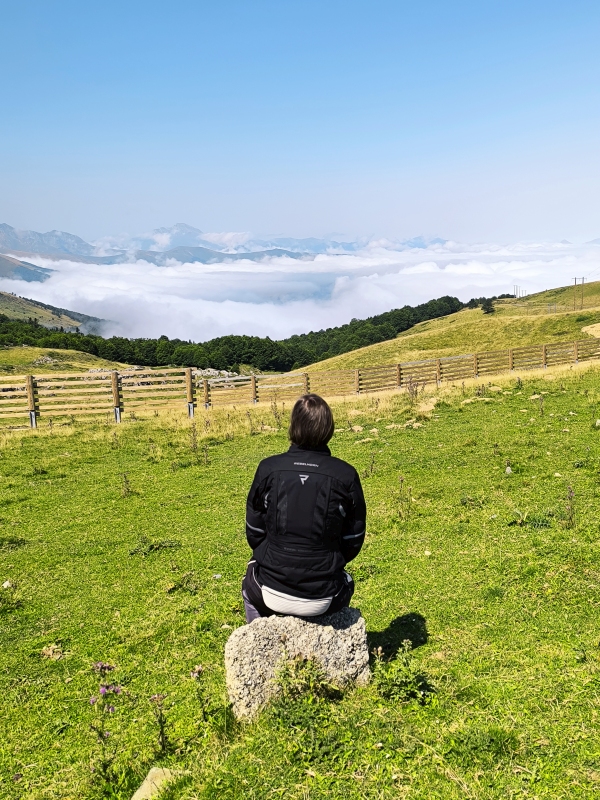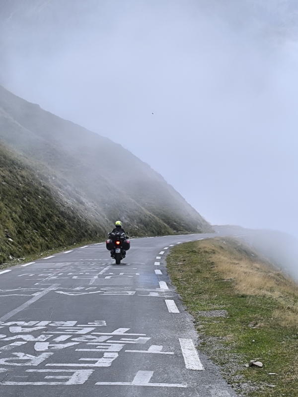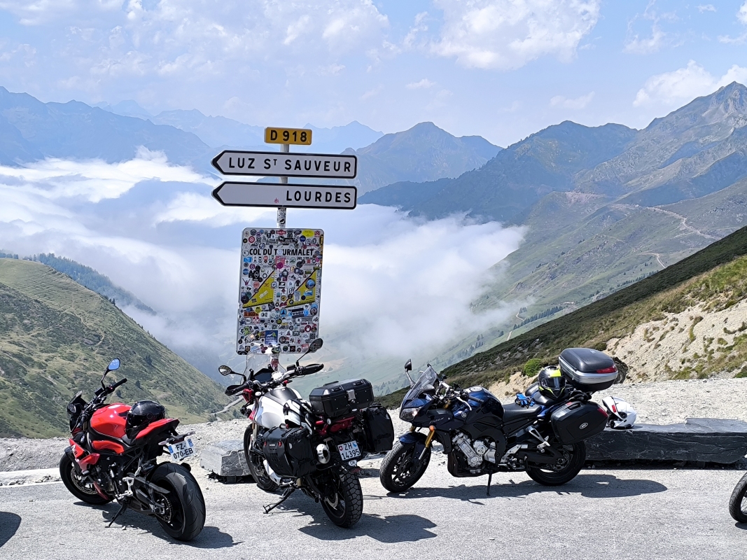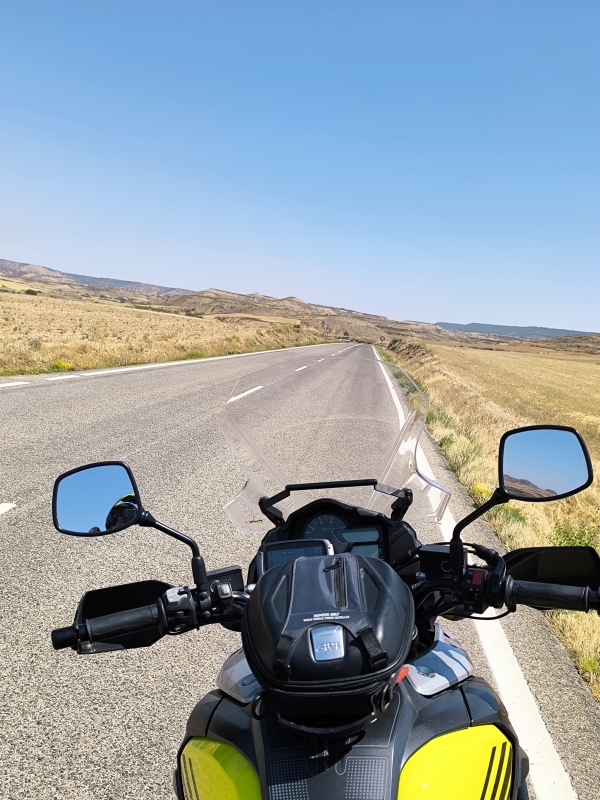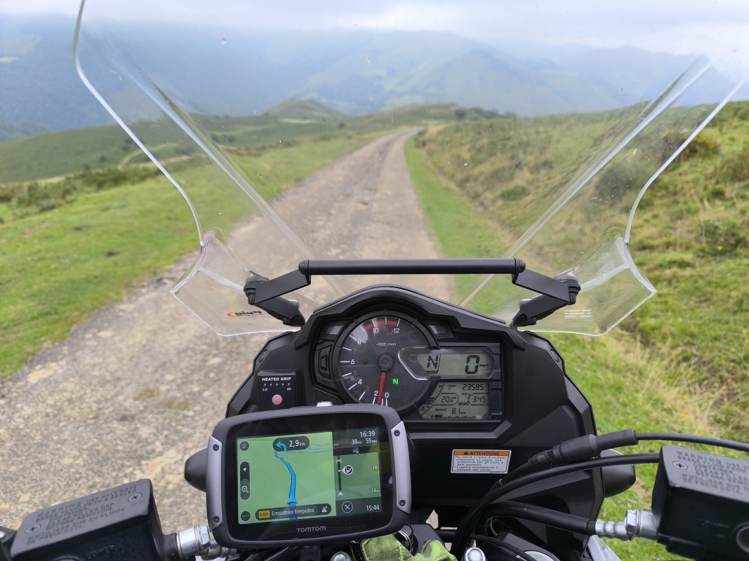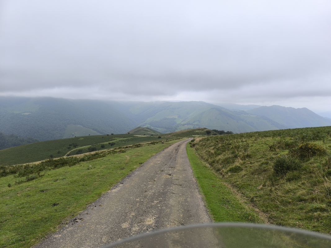 "Na zahod" 8. dan Včeraj je vse kazalo, da se bova danes vrgla v morje, ampak so se načrti pri zajtrku spremenili. Nič kaj takega, saj nimava postavljenega končnega cilja. Gledam zemljevid in mi v oči padejo še štiri točke v Pirenejih. Kdaj jih bova prevozila, če ne zdaj, ko sva tukaj. Vreme je bilo na oko itak kilavo, dokaj visoka oblačnost, cca 24°C, skratka pokrito. Po eni strani fajn, ker ni prevroče, po drugi strani pa je sončen dan, le sončen dan. Ko sem ukrotil tretjega člana odprave, sva šla na pot. Ta pizdun nekako zjutraj želi pozornost. Prvi prelaz v načrtu je bil Saint Martin. Upal sem, da bova prebila oblačnost, saj je vrh na višini 1765m. In res, nekje na 1300m naju je obsijalo sonce in prelepi pogledi v dolino. Pred vzponom je bila pred eno od trgovin neka predstava Mušketirjev. Itak sva obračala. Vmes sem pogrešal na motorju še višinomer in umetni horizont, ker sva nekaj časa vozila res z vidljivostjo, ki je ne privoščim nobenemu. Ko si v oblaku, si v oblaku. Res pa je tudi to, ko enkrat prideš višje, hitro pozabiš na tegobe izpred pol ure. Tukaj sva tudi prvič prečila mejo FRA/SPA. Ob spustu je bilo bistveno topleje, kot na francoski strani in ne duha ne sluha o kakih oblakih itd. SV stran Pirenejev pokrita, JZ stran pa popolnoma drug svet. V dolini naju je pričakalo 32°C. Hitro sva zavila desno in proti naslednjemu prelazu Larrau, ki je prav tako na meji in tako sva padla nazaj v Francijo. Sonček, prelepa cesta, zmeren promet, res kičasto. Višina dobrih 2000m, od koder se je lepo videlo, pokritost SV in jasnina na JZ. Ljudje na prelazu so uživali. Nekateri so sedeli na stolčkih in brali knjige, zopet drugi so uživali zgolj v razgledu in lepoti narave. Iz daljave so se slišali zvonci goveda, kamorkoli pogledaš vidiš tudi kakšno čredo ovac. Ko sva se začela spuščati, sva dohitela skupino choperjev. Res so bili počasni, pa vendar sva ostala za njimi in jim kvarila občutek mogočnosti v zvoku in kubikih. Po spustu sva zavila v smeri Harluze, vzporedno z mejo. Na internetu so prelepe fotografije razgledov. Midva sva danes imela to nesrečo, da sva po dokaj ozki cesti (prostor za en avto), ponovno jahala instrumentalno. Tu pa sem si rekel, a mi tega treba?! Zgleda, da ja. Ozka, vlažna, z iztrebki ovac prekrita cesta. V nekem trenutku nisem bil ziher ali sva že na makedamu ali je le toliko dreka na cesti. In to sranje, ja drek je sranje, v kombinaciji z vlago fajn drsi. Ta etapa naju je zmatrala. Ko sva prišla pod bazo oblakov, sva videla ogromno strmega hribovja in ozko cesto, ki se je vila po obronkih. No, to je bila najina pot. Počasi nama je začelo primanjkovati tudi goriva, saj sva bila zjutraj pametna in nisva nalila polno, ker je v Španiji gorivo cenejše. Vse lepo in prav, samo na španski strani ni bilo nobene pumpe. Jebemomilomater. Prva pumpa, ki je bila v dosegu je bila v kraju Saint Jean Pied de Port. Ok, do tja morava priti, pol bo vse ok. TomTom je rekel, da ima ta kraj 3 pumpe. Nalila sva kar na prvi, ziher je ziher. Kraj je bil zelo živahen in lep, zato sva šla malo peš čez mesto, pa na coffe. Tu sva probala tudi Les Canneles. To je "pecivo", različnih okusov, v osnovi gre za biskvit z okusom vanilje, ruma in s karamelizirano skorjo. Ponujajo več različnih dodatnih okusov. Vse sva zmazala. Do Pamplone naju je ločila še ura in pol vožnje po prelepi, lahko rečem panoramski poti. Tekoča cesta, prečenje meje med FRA/SPA. Ob cesti sva videla kar nekaj pohodnikov, ki premagujejo znano pot Camino. Skupna današnja pot od mesta Pau do Pamplone je znašala 273km in nekje 6 ur efektivne vožnje. Na koncu dneva si kar utrujen. V enem tednu kar sva na poti, sva prevozila cca 2400km, od tega cca 1700km lokalnih cest. V bistvu sva samo od doma do francoske meje vozila po AC. Jutri pa naprej. Kam? Sam Bog ve.
