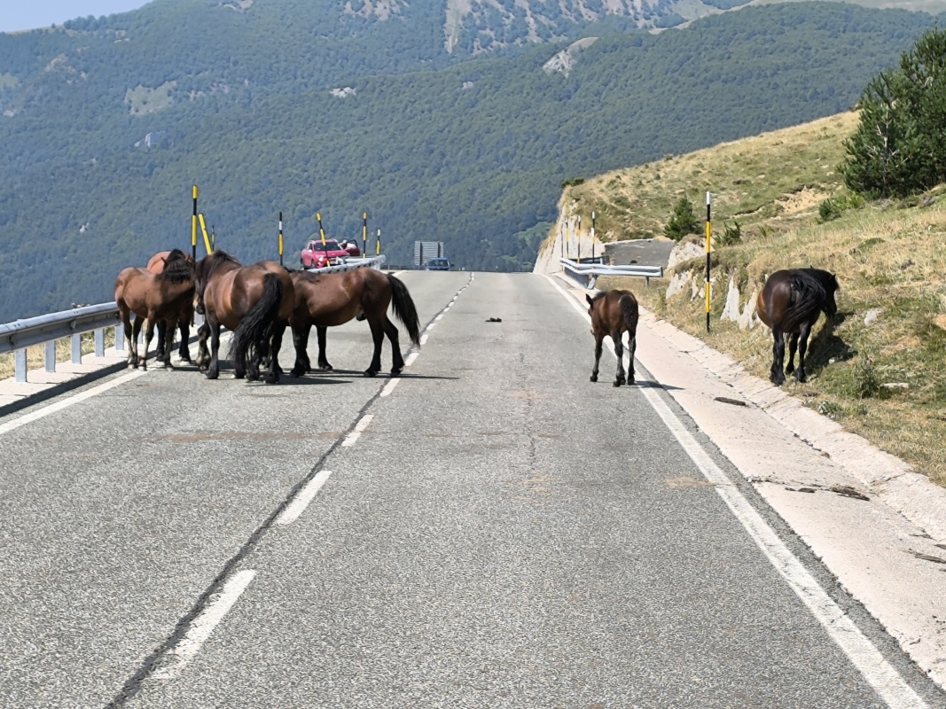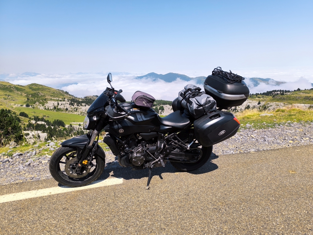 "Na zahod" 6. dan Zopet pišem jaz, kajti Karmen prepričam glih 1x ali pa 2x, da kaj napiše. Govori, da ona tega ne zna, da nima smisla za pisanje itd. Jaz mislim, da ga ima, je pa verjetno lažje, če to delam jaz. Spet sva v Franciji. Ker se premikava po Pirenejih sem ter tja, nikoli ne veš kje se boš znašel. Zjutraj sva se ležerno odpravila na pot, smer prelaz Col du Portillon, ki je na meji med Španijo in Francijo. Vmes sva potolkla še dva 2500m prelaza. Prav fajn je bilo. Ceste široke, promet zmeren, midva pa se odbijava po Pirenejih kot fliper kugla. Da ne bova kazala samo slik cest in hribov, danes dodajava živali. Ja, živali, take kosmate. Tik pred francosko mejo je Aran Park, kjer se da videti različne živalce. Vsi trije (jaz, Karmen in vnet išiasni živec) smo se zagnali v park, kjer je teta na blagajni povedala, da traja krožna hoja uro in pol. WTF? Uro in pol?! Prva misel je bila, grem, pa če mi noga odpade. Ker zdaj so bila obdobja, da sem stopical po 200m, počival itd. Še vedno mi je najbolj udobno na motorju, brez vseh bolečin. Motor je terapija. Prav ponosen sem bil na najinega spremljevalca, ker se niti 1x ni oglasil na celem ogledu. Človek je z lahkoto pozabil nanj. Priznam, so bili trenutki, ko sem pomislil, ajde cigo, vsekaj če upaš, p***a ti materina!!! Ja, tudi preklinjam, včasih bolj, včasih manj. V tem parku so lepe živalce, sprehod po gozdu, malo gor, malo dol, všečno. Par slik iz tega parka bo spodaj. Vem, so živalce, ki bodo enim zelo všeč. Iz Aran Parka sva se spustila po strmih serpetinah v Francijo. Jebo mater, Francija je ornk jezikovna bariera. Bolj se matraš, manj razumeš, manj te razumejo. Po 185km se nama ni dalo več premetavat motorjev iz ovinka v ovinek in sva začela iskati nek kamp, kjer bova v miru spala in da ne bo vroče. Torej, treba ostati nekje v hribih. Najdeva kamp, teta govori samo francosko, jedva se z rokami zmenimo, da bi postavila šotor. Prikima in naju odpelje med dve prikolici. Zgleda kot da so pavšalisti, ki jih trenutno ni tukaj. Itak, balkanca se razkomotiva, uporabljava še od enega teraso. Popolna zmaga. Večerja, pa dva pira preko, pa se že da. Karmen mi kupuje pivo, ki ima nekje od 6 do 8‰ alkohola. Pridna, ni kaj. V kombinaciji z Nalgesinom, se najin tretji sopotnik ne oglaša. Prijatelj Tone je nekoč rekel, da je Nalgesin zakon. Zdaj verjamem. Kamp... Parcela, ki ni parcela in je parcela med dvema prikolicama, naju je stala 9.30€ (šotor, dva motorja in mi trije). Danes sem bil velikodušen in sem dal celih 10€ in ko res iskreno misliš, da naj obdrži drobiž. Danes sem tudi poklical na T-2 in vprašal, če lahko zakupim še kaj podatkov za tujino? Tip mi je odgovoril, da ne in da lahko ponovno aktiviram podatke in uporabljam. Samo ta, tarifa je taka, da čutiš na koži, kako te odirajo. Ker telefon podpira e-SIM, pa sem kupil e-kartico za območje EU, da imam vsaj nekaj. Ceneje in manj boleče od odiranja domačega operaterja. Dobil sem tudi vprašanje, kaj je bilo z verigo? Nič posebnega. Nov verižni set, ki pred potovanjem še ni dal skozi niti 1000km je bila veriga precej labava. Itak sem 27 gedoro pustil doma, saj je nikoli nisem rabil. No, zdaj bi jo, ker nisem imel s čem odviti zadnje akse. Kam pa jutri? Tako kot za fliper kuglo ne veš, kam se bo odbila, tako tudi midva ne veva kam. Ziher se bova nekam premaknila.