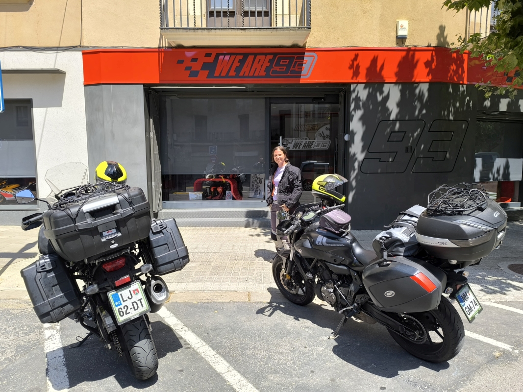 "Na zahod" 12. dan Zdaj bi lahko napisal tudi "Na vzhod 12. dan", saj se premikava proti vzhodu. Noč je bila kratka. Brez milosti, treba je vstati. Bolj dolgo ležiš, bolj dolgo te sonce kuri na cesti. Zelo preprosta matematika. Karmen je skočila po zajtrk v bližnjo trgovino, jaz sem počasi podiral šotor in klepetal z motoristom iz Italije, ki je bil najin sosed. Prijeten možakar. Tudi on potuje brez nekega točno določenega cilja. Ima ogromno točk na zemljevidu in gre kamur mu tisti dan paše. Podobno kot midva. Najina prva današnja točka je bilo rojstno mesto Marca Marqueza, Cervera. Pač, če sva že tu blizu, pa dajva. Do Cervere sva vozila po lokalnih cestah, med polji, majhnimi kraji,... Ceste lepe, prijetnih 30°C. Ja, 30°C prav paše proti 40°C. Ko sva prišla v Cervero sva ugotovila, da so Španci preprosto šli na siesto. Pogledala sva to njegovo trgovino od zunaj in se šla osvežit v sosednji lokal. Ker je bil v planu še en Moto muzej, sva hitro pogooglala, če je odprt. E, tudi tam siesta, tako da sva pol sprejela sklep, da potegneva v Francijo. Ok, bo fajn toplo, pa kaj češ, bova delala tranzit po AC, da bo čas potovanja čim krajši. Pogledala sva kaj ponuja booking, našel sem ugodno nastanitev, v bistvu apartma. O tem malo kasneje. Pot sva izbrala preko prelaza Coll de A'res, visok nekaj čez 1500m, nič posebnega. Glede na kratko noč, in v glavnem vožnjo na 35°C, sva oba bila kar utrujena. Posledično sva se premikala dokaj počasi, v bistvu ni bilo neke dinamike, fejst na ziher. Komaj ko sva se začela vzpenjati, je temperatura padla na zelo hladnih 23°C. Tomek naju je pripeljal na cilj, kjer bi naj bil najin apartma. Ja, kjer bi naj bil. Ni take bajte, nič podobnega slikam iz bookinga. Cela gnila od švica tacama naokoli in iščeva, nič. Srečam tri ženske, čebljajo na ulici. Razumemo se nič od nič. Na telefonu jim kažem, kaj iščem, nikoli videle, nikoli slišale. To sem razbral iz njihove mimike. Jebemomilomater, pa sem padel na fake nastanitev. Pol sreča Karmen enega mladeniča, tuhta in reče, to ni tukaj. Itak da ni, če naslov na bookingu pripada manjšemu gradu v mestu. Pol tip nekaj natuhta in nama da točko na Google maps. Ajde, probajva. Razdalja 1.8km, kar ni tako malo. Peljeva. Ko prideva na cilj, je to ena podrtija, dobesedno podrta bajta. Pa ne noooo! Greva še malo naprej in najdeva ime najinega apartmaja. Zvoniva, nikogar nikjer. Še to. Pol začne lajati pes, kar je nekako dobro, saj bi znal priti lastnik pogledat, kaj se dogaja. Tako je tudi bilo. Lastnica je starejša gospa, ko naju je videla, kako sva zdelana, naju je najprej povabila k sebi in dala za pit. Meni pir, Karmen sok. Oba srečna in komaj čakala tuš, da vrževa iz sebe te prešvicane in lepljive cote. Saj veste, tisti občutek, ko se gabiš sam sebi. Po tušu sva hitro dirkala nazaj v trgovino po zajtrk in kasneje še iskat večerjo. Itak ni nič odprto. Slučajno sva našla en lokal s hitro hrano. Tam pa gužva. Kaj ne bo, če je edini v mestu. Ko sva se najedla, sva se spustila nazaj v dolino, v najin pregret apartma. Pivo, ki je bilo par dni v kufru na motorju, se je lepo shladilo v skrinji. Prav paše ob pisanju današnjih dogodivščin. Jutri bo zopet tranzit, morava priti do Alp, tam bo prijetneje. Danes sva prevozila 430 km, v cca 6 urah aktivne vožnje. Dovolj je bilo. Tudi savne nihče ne priporoča 6 ur skupaj, a ne?