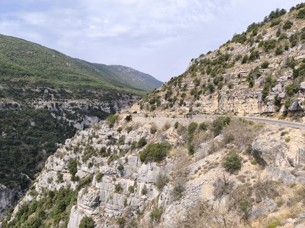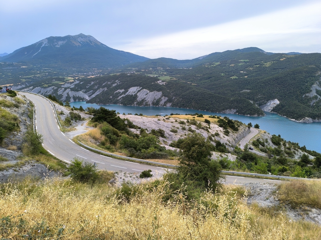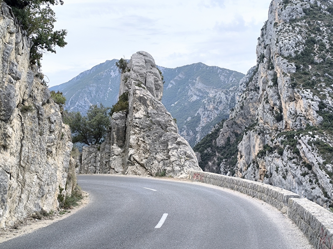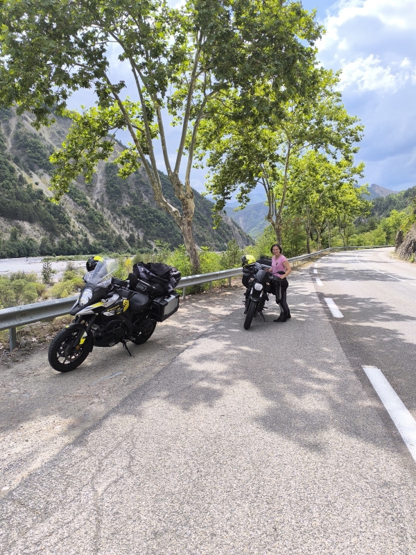 "Na zahod" 14. dan Klasično jutro, na hitro je potrebno vse podret in pospraviti. Ko sva bila pripravljena za odhod, sva šla še v lokal kampa na kavo in rogljiček, ki sva ga že včeraj naročila. Drugače ne dobiš nič. Tudi wc papirja ne. Še dobro, da voziva tudi wc papir s seboj. V tem kampu se prav vidi, da te hočejo za vsako stvar odreti. Ko sem želel plačati s kartico, tudi to ni bilo možno, ker imajo neko politiko, da s kartico lahko plačaš le znesek nad 15€. Verjetno zaradi provizij pos terminalov. To razumem, ampak ne razumejo oni mene, da če grem jaz dvignit gotovino na bankomat, tudi jaz plačam provizijo. Ko so se mi na hitro zavrtele te misli, sem bil nespoštljiv in sem na glas govoril "Jebite si mater!" Ko je ženska videla v denarnici gotovino, se je drla "oui, oui, oui", torej se je strinjala, da ji jeb** mater. Karmen je težko zadrževala smeh ob najini komunikaciji. Vem, ni lepo, ampak,... Pot sva nadaljevala preko mostu, kjer se nekako konča reka Verdon, ki se razširi v jezero. Folka koliko hočeš in tudi raznega napihljivega vodnega prometa. Pot sva nadaljevala po panoramski cesti soteske Verdon. Res prelepi razgledi. Cesta je krožna. Mislim, da je nepisano pravilo, da se vozi v smeri urinega kazalca. Kontra prometa v glavnem ni bilo, le tu in tam kak avto. Ko sva sklenila krog, sva naredila pavzo in načrt za naprej, Coll de la Bonette. Pustila sva Tomeku naj izbere pot, veliko krat naju pelje po res lepih poteh, ki jih sama ne bi nikoli izbrala. Naračunal je nekaj čez 130km, le čas je bil kar dolg. Nič, gremo. Izbral je res prelepo cesto, tekoča, ne preveč prometa, prekrasni razgledi. Zvlekel naju je še čez prelaz Coll de la Cayolle, 2326m. Tja gor sva se kar namatrala. Cesta za širino avta, prometa kar nekaj. Vmes je padlo par kapelj dežja, pa sem se vprašal, a mi tega treba? Iz zahoda se je nekaj kuhalo, v daljavi sva videla dež. Tuhtam,... Še en prelaz, dež, ura se bliža večeru... Ni mi najbolj dišalo. Spuščava se po ozki cesti, vendar prečudoviti naravi. Nekje na 1800m je bilo križišče, kjer bi morala zaviti desno do najinega prelaza. Še 20km. Hm,... Zaustaviva se in gledava to cesto. Google jo sicer pozna, prešvoh izgleda. Ne, nočem v makedam, slej ali prej bi se to zgodilo. Odločiva se, da bova nadaljevala pot proti mestu Barcellonette, kjer so tudi trije kampi. Ok, pol ure spuščanja, to bova že. Ko sva prišla v mesto, sva ugotovila, da so vsi kampi polni, zato sva se namenila na zahod, kjer je večje število kampov. Voziva, prideva do prvega. Greva vprašat, dobiva lepo parcelo. Postaviva šotor, skuhava, pospraviva kaj je za pospraviti in se vlije. Glih tega treba. Jutri bova nadaljevala na prvotni cilj, le malo bolj naokoli, ne po makedamu. Danes je bil res dan lepih razgledov, lepih ovinkastih cest, pa tudi takih zelo ozkih in fejst ovinkastih. Fajn sva se nadelala na cca 230 prevoženih km in skoraj 6 urah vožnje. Če se komu to zdi malo, probaj.