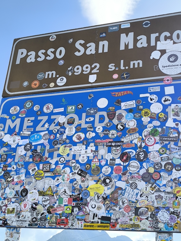 "Na zahod" 16. dan Ker so nekateri rekli, da še ne smeva proti domu, je zjutraj posijalo sonce. No, bom pa jutri pritisnil tipko "Domov" na navigaciji. Po sladkem italijanskem zajtrku, sva zopet vse lepo pospravila, saj sva ponoči na ograji hotela sušila šotor. Pač, cigana. Okoli desete sva odrinila na pot v smeri mesta Como in istoimenskega jezera. Zgužvava se v center, na hitro malo v stari del mesta, pogledala katedralo, se posladkala s sladoledom, dolila tekočine v telesi in gasa naprej. Ko pridem do motorja, slišim slovenski jezik. Woooow, odkar sva na poti, nisva slišala slovenske besede, videla slovenske registrske na avtu ali motorju. No, danes sva spoznala Špelo in Matija, ki prav tako potujeta z motorjem. Malo smo klepetali na ulici, nato je Matija predlagal, da nekaj spijemo v sosednjem lokalu. Prav prijetno smo poklepetali. Pa še bi lahko, ampak čas neusmiljeno teče, kugla vedno bolj močno šajna, pred nama pa je bilo še kar nekaj km. Odpraviva se proti gradu Vezio, kjer je upodobljenih kar nekaj duhecov. Pač, Karmen si jih je želela ogledati, jaz nisem imel neke izbire. Kasneje sem ugotovil, da tudi Matija ni imel izbire, ker je Karmen dala Špeli lokacijo in smo se tudi na tem gradu ponovno srečali. Verjetno jaz in Matija najboljše veva o čem govorim. Od tod sva nadaljevala pot na prelaz San Marco (1992m). Ura je bila že preko štiri popoldan, midva še vedno na sladkem zajtrku. Meni so počasi pojenjale moči, v bistvu sem bil bolj tečen kot kaj druga, posledično mi tudi za vozit ni bilo. To gre nekako tako, če ni hrane, ni kilometrov. Cesta navzgor je dokaj ozka in zelo prometna. Nonstop si na preži. Posledično je bilo tudi malo manj slikanja in snemanja. Malo pod vrhom prelaza sva naletela na prometno nesrečo motorista, ki je zletel na spodnjo stran ceste. Sprva nisva vedela za kaj gre, pač ljudje stojilo na cesti in nekaj motorjev. Sporazumeti se z Italijani je hudič. Nato vidiva pod cesto motor in Karmen sprašuje ta folk, če potrebujejo pomoč, če je motorist ok? Pol nekako skapirava, da je motorist spodaj. Vržem iz sebe jakno in airbag, zaženem se dol, na kar hitro vidim, da je truplo že pokrito. Tu več ni kaj pomagati, zato sva se odpravila počasi navzgor. Malo te stisne in se sprašuješ, kaj je naredil narobe, česa ni naredil. Itak je polna glava špekulacij in predvidevanj, kaj je dejansko bilo, ne ve nihče. Med vožnjo sva se pogovorila o varnosti, vožnji itd, spucala glavi in se spustila na drugo stran prelaza. Sam prelaz je lep, lepi razgledi. Na južni strani je tudi širša cesta in bolj pretočna. V načrtu je bil še en prelaz, vendar je bilo za moj okus, lakoto in utrujenost to izzivanje sreče ali pa nesreče. V tistem trenutku sem tako čutil, ga vrgel iz navigacije in sva nadaljevala pot v smeri Bergama in naprej proti nastanitvi, ki sva jo v bistvu rezervirala tukaj, ker bi tu prišla iz drugega prelaza. Jebi ga, v redu je tako. Privoščila sva si hiter tuš, nato sva z enim motorjem šla poiskat hrano. Tudi danes je v večini vse zaprto. Par km pred nastanitvijo, je Karmen zavohala kebab in sva se vrnila tja. Tudi pivo je imel v pravi meri, 0.66 litra, kar je bilo izvrstno. Danes ne gledava, kje bova jutri spala, saj bova potegnila do doma. Ena skrb manj.