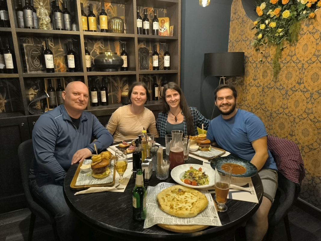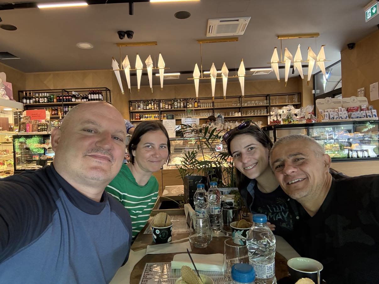 20. dan - Sakartvelo in Hayastan tour Današnjemu dnevu bom rekel zelo preprosto, to je "Dan za prijatelje".Dopoldan smo se srečali s Kalinom, ki je prav tako motoristična duša. Z njim je vedno prijetno izmenjati menja, se pridružiti in nasmejati. Nekaj časa sva sama raziskovala Sofijo, nato se nama je pridružila tudi Iskra. Sprehajali smo se po mestu, po parkih, klepetali o tem in onem. Kasneje se je pridružil tudi Atanas, ki je moral dopoldan v službo.Vsebine klepetov ne morem razkrivati. Smo pa kvalitetno preživeli dan, kar je edino pomembno.Hvaležna sva za čas, ki sta ga preživela z nama.Ja, dobro smo jedli, se posladkali, tudi pivo sem dobil.Jutri nadaljujeva pot proti domovini.