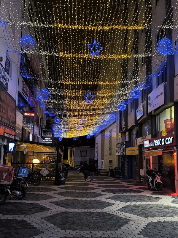 Naj dodam, da je to slikano konec aprila in okrasitev mesta ni del zahodne božične tradicije.