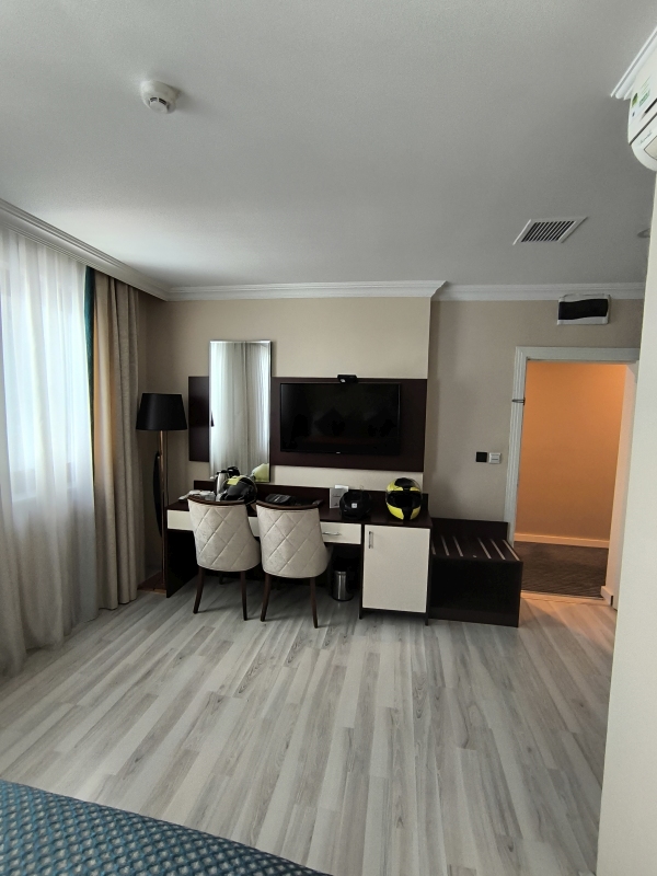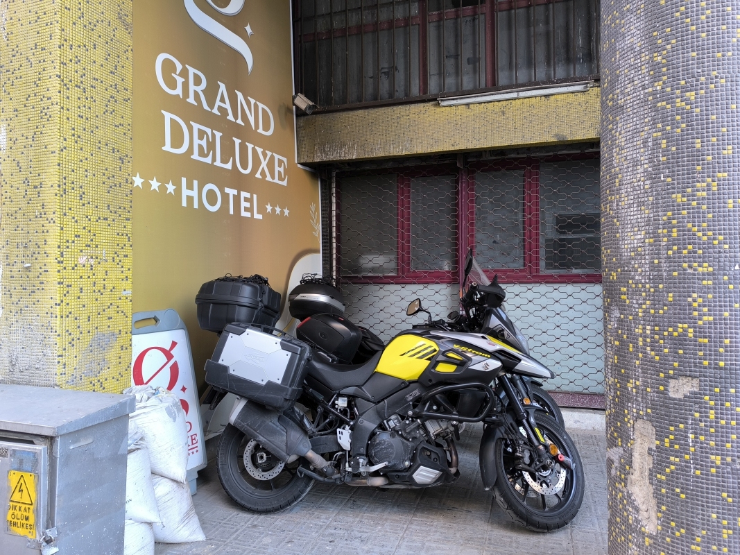 2. dan - Sakartvelo in Hayastan tour Snoči pred spanjem sva se z najinima gostiteljema dogovorila, da bo zajtrk ob 7.00. Tega smo se tudi držali in tako sva ob 8.00 šla na pot proti Bolu (Turčija).Na hitro smo se poslovili in zajahala sva v dokaj sveže jutro. Prav super je bilo, saj ni deževalo, tu in tam kak oblakec. Moram reči, da je bilo prav obetavno. Pa vendar, po prvi uri vožnje sva že stala na odstavnem pasu in vlekla nase dežjake. Tudi temperatura je padla pod 10°C. Vozila sva proti BG/TUR meji in upala, da bo šlo vse gladko skozi. Na nek način sva z mejnimi postopki opravila v eni uri od prihoda, kar je bilo super. Res je tudi to, da sva se zrinila skoraj čisto naprej, saj je kolona bila kar dolga. Če se ne bi zrinila, bi čakala še lep čas. Na meji sva tudi vprašala, kje lahko kupiva HGS kartico za plačevanje cestnine? Na meji pravijo, da to urediva na prvi bencinski, na bencinski pravijo, da to urediva na prvi PTT. Ko prideva do PTT, pa je bila le ta zaprta. To sem že vedel, saj mi je Google to že povedal. Drugače je čisto običajen postopek, da kupiš to na PTT. Natakarica iz bližnjega lokala ob pošti nama je rekla, naj se ne sekirava, da se 15 dni lahko voziva brez tega in da na koncu plačava. Tako sva se danes tudi obnašala. Nekaj cestnin je vseeno bilo potrebno plačati kar na cestninskih postajah.Kaj vse sva danes doživela?Miks vsega. Temperature od 8°C - 20°C, močan veter, dež, meglo, kombinacijo vsega. Do cilja sva prišla v mraku, dežju in megli. Priznam, danes sva kar utrujena, najbolj naju je zmahal veter, ko sva bila na "severni Istanbulski obvoznici", nato pa še vsi drugi vremenski dodatki. Vroč tuš je neizmerno pasal, nato pa v mesto nekaj pojest. V bistvu imava apartma v centru. Bila je dobra cena, nočitev z zajtrkom, WiFi, parking itd, 38€. Kratek čas sva hodila po ulici, ko sva zagledala eno domačo gostilno, ki je bila nabito polna. Sem greva! Dobiva mizo, jedilni list v turščini, tako da nisva bila najbolj ziher, kaj bova dobila. Na koncu je odlično izpadlo, za dobro ceno. Večerja za oba, 15€. Danes sva potolkla 820km, v 9.5 ure efektivne vožnje, vsega skupaj sva bila na poti 12 ur. Razliko v času sva porabila za mejo, HGS, tankanje, pavze itd. Zjutraj se bova odločila, do kod bova šla naprej.