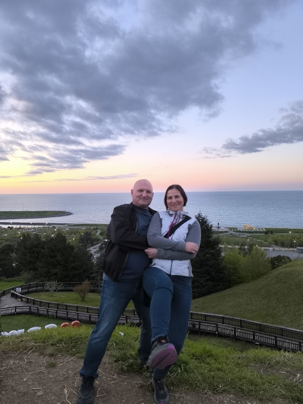 3. dan - Sakartvelo in Hayastan tour Danes pa je že bolj dišalo po dopustu. Tempo je bil manjši, cca 475km, torej čas za zaustavljanje in martinčkanje na sončku. Ja, sonček je bil, niti enkrat nisva nase vlekla olagumijev !!!! Res je tudi to, da nisva nase dajala tudi kopalk, saj so temperature komaj dosegle 20°C, pa še to ne vsepovsod. Pot naju je vodila po široki državni cesti čez hribe in doline, tunele in viadukte, skratka noro dobro je bilo. Državna nepljačljiva cesta, to pomeni isto kot pri nas AC, le da tukaj nima ograje in priključki so odprtega tipa.Danes je bil tudi dan za policijske kontrole. Na tej relaciji sva stala 3 krat. Pogleda potni list, registrsko na motorju, primerja podatke v bazi in to je to. Dokler ne pišejo kazni in so nasmejani, naju lahko vsak dan 3x zaustavijo. Prvi policaj se je malo čudil, ko je gledal vstopni žig v potnem listu in najino trenutno lokacijo. Zgleda sva se res lepo premaknila na vzhod.Pa še to, naletela sva na table z omejitvijo hitrosti 82km/h. Lahko rečem, da je tukaj fajn tankat, ker je bencin cenejši, do zdaj najcenejši na celi ruti. Ko nalijeva oba, prideva skoz za cca 20€. Res je da tankava vsaj 2x na dan, pa vendar. V Samsun sva prispela, ko je bilo sonce še visoko. Hitro pod tuš, preobleč in pogledat v mesto. Odločila sa se, da greva na Amisos Tepesi, to je razgledna točka, k baje para gate. Baje se vidi celo mesto itd. Seveda, štartava peš, v eno smer cca 45min hitre hoje. Naj povem, to mesto je prislonjeno na hrib, kar pomeni, da sva se pošteno nagarala. Ko sva se povzpela na prvi klanec, sva ugotovila, da je to na sosednjem hribu. Ajde, greva naprej, če sva že tu. Naj še kdo reče, da ne športava na dopustu. Vmes sem si rekel, kaj mi je tega treba?! Taxi je čisto poceni. Po drugi strani pa, potrebno se je razgibati. Ko končno prideva do cilja, nov šok. Na vrh ne smeš, je ograjeno, zraven so bile tudi neke table, v nama nerazumljivem jeziku. Verjetno je pisalo, da če bova preskočila ograjo, da bova oba šla nekam na prisilno delo ali pa še kaj hujšega. Bolj kot iščeva nek razgled, bolj nič ne vidiva. Ko sva že skoraj obupala, vidiva na vrhu zelo mlad par. Stojita gor in se razglejujeta, ni videti, da bi hitela, da ju je česa strah itd. Spogledava se in rečem: "Greva gor, pa naj bo kar bo. Zdaj sva tukaj, ne veva, kdaj bo naslednjič, če še sploh kdaj!" Z lahkoto sva preskočila ograjo, itak sva bila ogreta od vseh strmin, stopnic in ne vem česa še vse, kar sva narajmala na poti sem. Pogledava naokoli, naredim en hiter posnetek, stisneva en sebek in hočeva pobegniti nazaj dol, preden naju kdo pospremi. Nato se začneta mladeniča z nama pogovarjati. Nekako nismo imeli skupnega jezika, zato je pomagal telefon, ki je bil v vlogi prevajalca. Bila sva jima zanimiva, da sva sploh prišla v Samsun iz Slovenije, da sva z motorjema, itd. Skratka, bila sta zelo prijazna. Potem sta nama še ponudila, da naju slikata, če želiva. Itak, vzameva vse kar je zastonj. Uh, ta pa diši že malo po savinjčanih. Na koncu si stisnemo roko in se poslovimo. Nazaj sva se vračala ob obali. Res je lepo urejeno. Ogromen park, en kup različnih igrišč, parkirišč, urejenih piknik prostorov, skratka ljudje lahko dajo iz sebe viške energije. Bilo nama je všeč. Nekako naju je spominjalo na Mersin na jugu Turčije, ki sva ga obiskala nekaj let nazaj. Po celem dnevu in rekreiranju po mestu, je bilo treba najti tudi nekaj za jest, kajti lačen sem še vedno ful drugačen. Jebemti, to se z leti nič ne spreminja, čeprav se ljudje nekako počasi spreminjamo. Ne me spraševati ali na boljše ali slabše. Vsak je najboljša verzija samega sebe.Kukava čez okna lokalov. Res je, lokalov kot bi jih naklel, potrebno je najti primernega. Tam, kjer je gužva, to bo najboljše. Zopet sva se vrgla med domačine, naročila kar po plakatih na zidu, kjer so bile slike jedi. Po jedilnem listu niso znali ponuditi v angleščini, niti midva naročiti turščini. Torej, ostane prst in slika. To gre nekako takole ... Pokažeš s prstom proti sliki in rečeš "aammmm". Si ne predstavljaš kako to zgleda? Preberi še enkrat. Tudi tu ti razložijo še enkrat v turščini, kljub temu, da ne razumeš nič. Itak, verjetno boš skapiral, saj je povedal počasneje haha. Skratka, nafutrali in napojili so naju za 16€, kar je bilo več kot odlično za dva obroka, dve pijači in dve sladici.Kaj pa jutri? Jutri bo nov dan. Odločila sva se, da bo sončen, lep in poln doživetij. Cel dan bova vozila ob obali.Za nekatere bo to jutri, z nekatere pa že kar danes. Imejte se lepo.