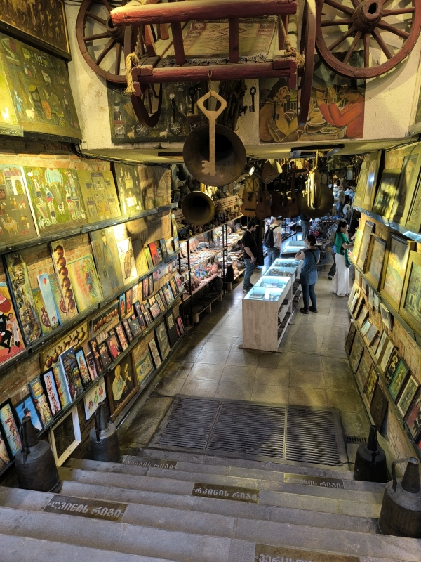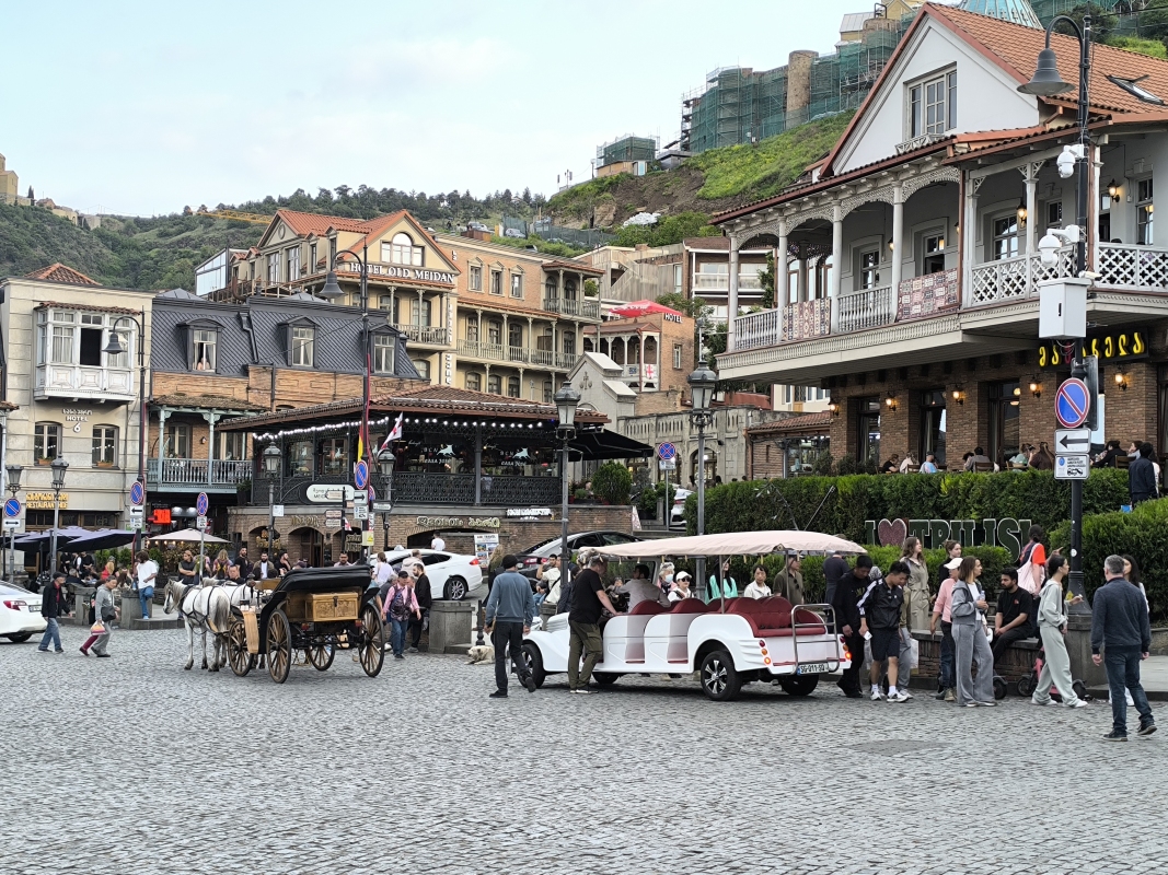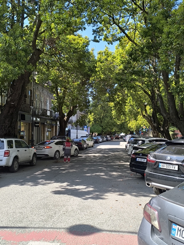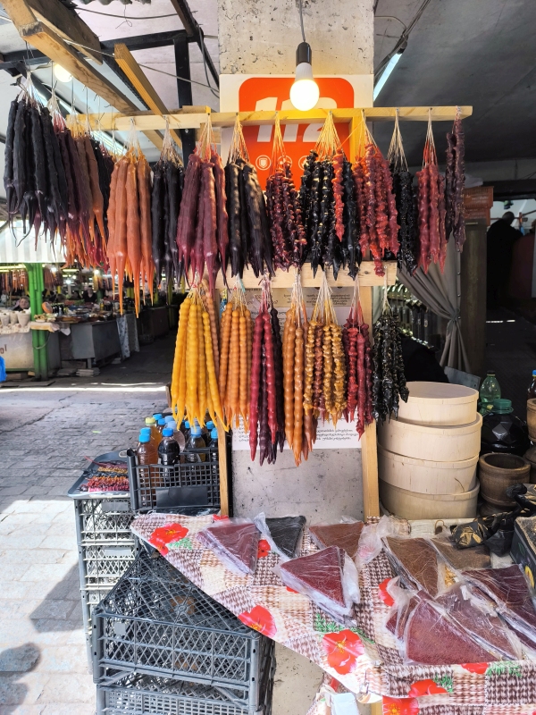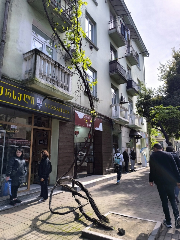 5. dan - Sakartvelo in Hayastan tour Danes pa je bil dan brez motorjev. Peš sva raziskovala mesto. Po pričakovanju je popolnoma drugačno doživetje, kot v siju luči. Prvo kar sa opazila, v mestu je ogromno dreves, različnih grmovnic in tudi vinskih trt, ki se vzpenjejo na balkone hiš. Najvišje kar sva videla, je trta segala do tretjega nadstropja. Res zanimivo. Opazila sva tudi zelo visoke pločnike, kar pojasnjuje, zakaj je kar nekaj vozil s poškodovanimi odbijači ali pa celo manjkajo. Z lahkoto ga snameš.Hrano sva degustirala na ulici, pa tudi en dober rdeč vinček. Bil je zelo sladek, pač po mojem okusu.Bil je še en zanimiv dogodek, ko sva želela prečkati cesto. Malo prej naju dohiti en kuža (uličar). Povohal je Karmen, ki se ga je vstrašila, saj ni pričakovala, da se bo karkoli dotaknilo njene roke. Jaz najdem trenutek in stečem med avti čez cesto, Karmen in kuža pa ostaneta na drugi strani ceste. In takrat se kuža začne zaganjat in lajati na vsa mimo vozeča vozila. Ko se je končno sprostil promet, se je stisnil ob njeno nogo, jo gledal navzgor in pospremil čez cesto. Nato je na drugi strani ceste povohal še mene in naju zapustil. Težko je to opisati, to bi moral posneti. In pol se sprašuješ, kaj pa je bilo to? Tako, danes je to objava za tiste, ki raje gledate slikce, kot pa berete.
