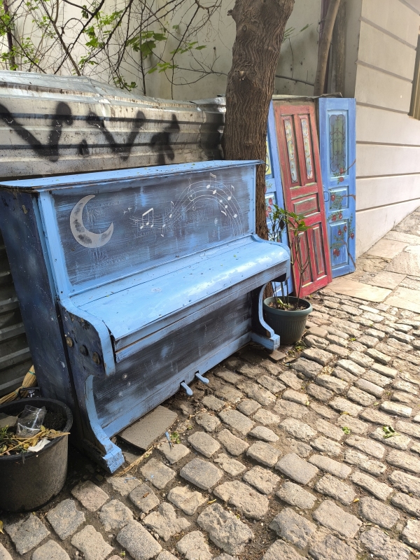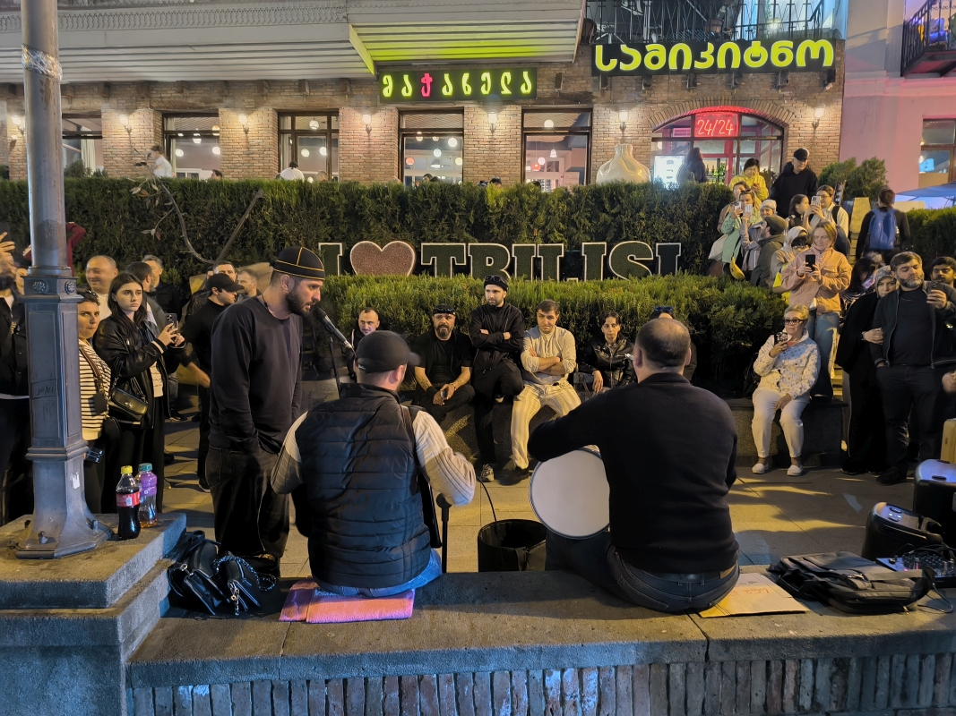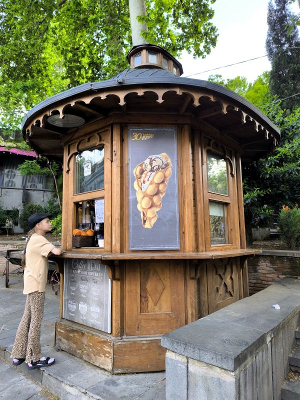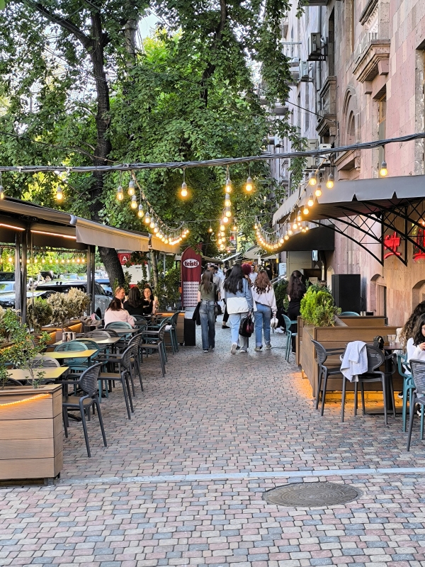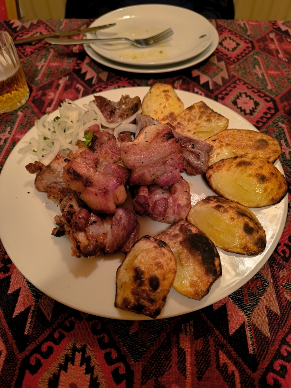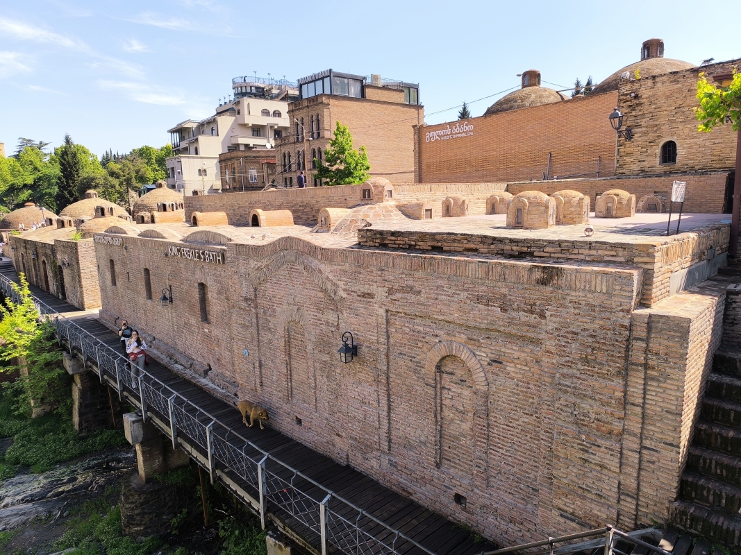 5. dan - Sakartvelo in Hayastan tour Danes pa je bil dan brez motorjev. Peš sva raziskovala mesto. Po pričakovanju je popolnoma drugačno doživetje, kot v siju luči. Prvo kar sa opazila, v mestu je ogromno dreves, različnih grmovnic in tudi vinskih trt, ki se vzpenjejo na balkone hiš. Najvišje kar sva videla, je trta segala do tretjega nadstropja. Res zanimivo. Opazila sva tudi zelo visoke pločnike, kar pojasnjuje, zakaj je kar nekaj vozil s poškodovanimi odbijači ali pa celo manjkajo. Z lahkoto ga snameš.Hrano sva degustirala na ulici, pa tudi en dober rdeč vinček. Bil je zelo sladek, pač po mojem okusu.Bil je še en zanimiv dogodek, ko sva želela prečkati cesto. Malo prej naju dohiti en kuža (uličar). Povohal je Karmen, ki se ga je vstrašila, saj ni pričakovala, da se bo karkoli dotaknilo njene roke. Jaz najdem trenutek in stečem med avti čez cesto, Karmen in kuža pa ostaneta na drugi strani ceste. In takrat se kuža začne zaganjat in lajati na vsa mimo vozeča vozila. Ko se je končno sprostil promet, se je stisnil ob njeno nogo, jo gledal navzgor in pospremil čez cesto. Nato je na drugi strani ceste povohal še mene in naju zapustil. Težko je to opisati, to bi moral posneti. In pol se sprašuješ, kaj pa je bilo to? Tako, danes je to objava za tiste, ki raje gledate slikce, kot pa berete.