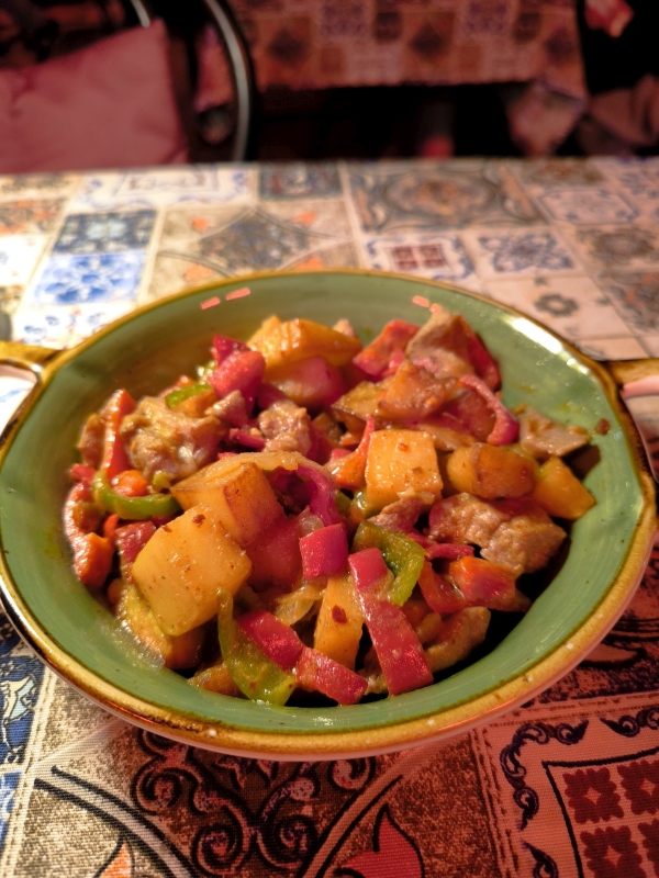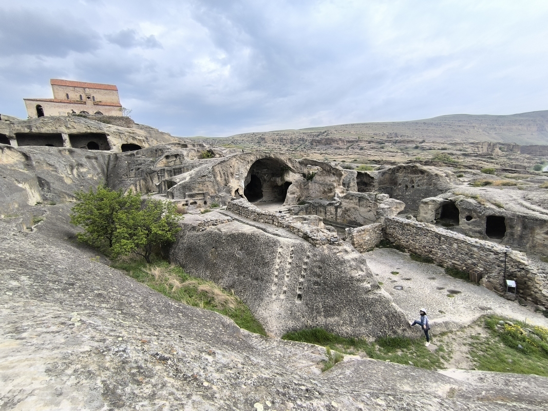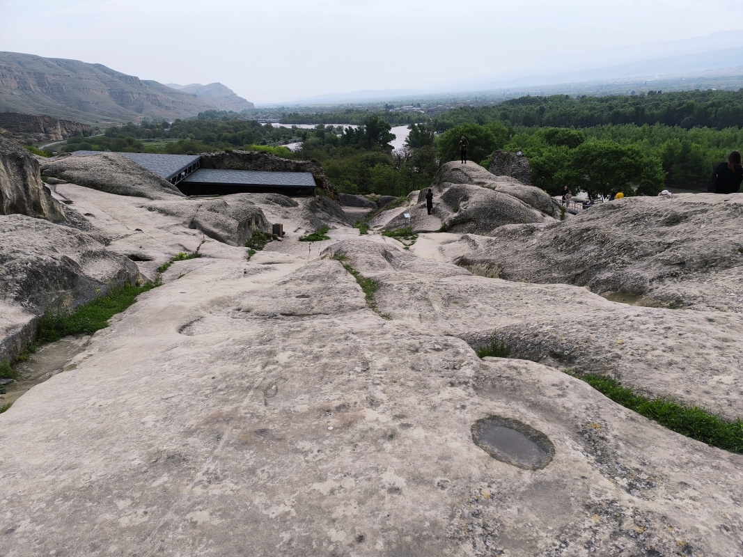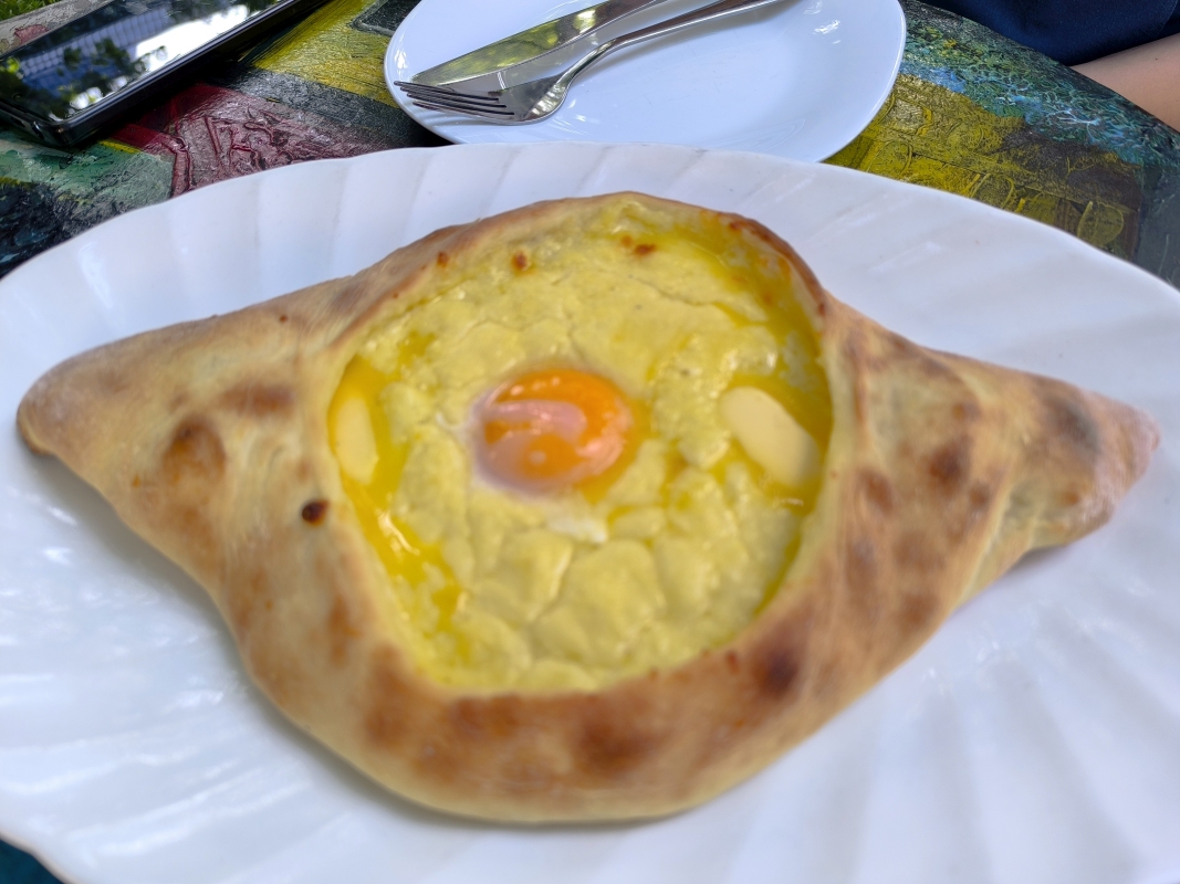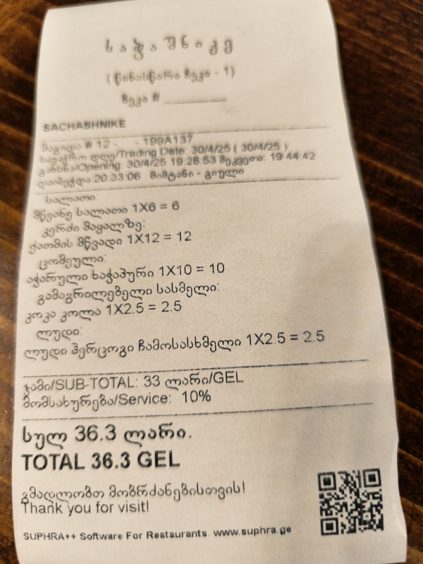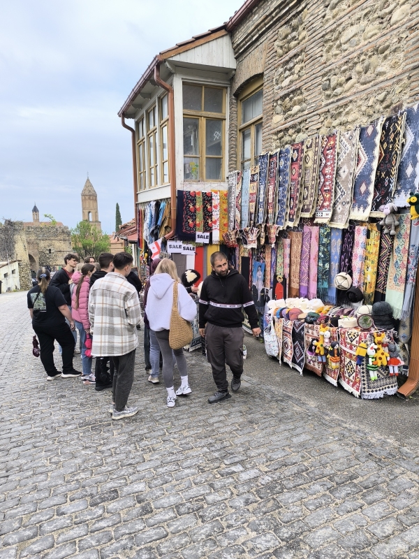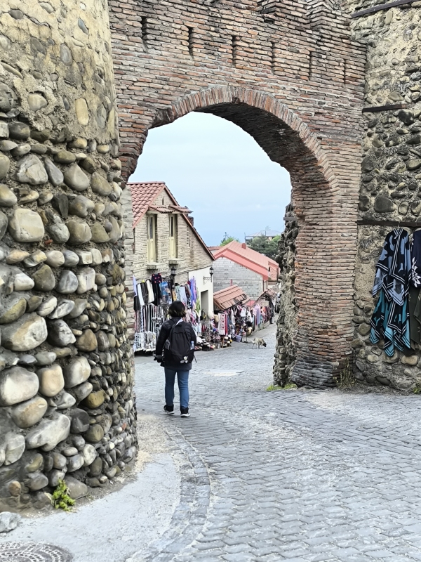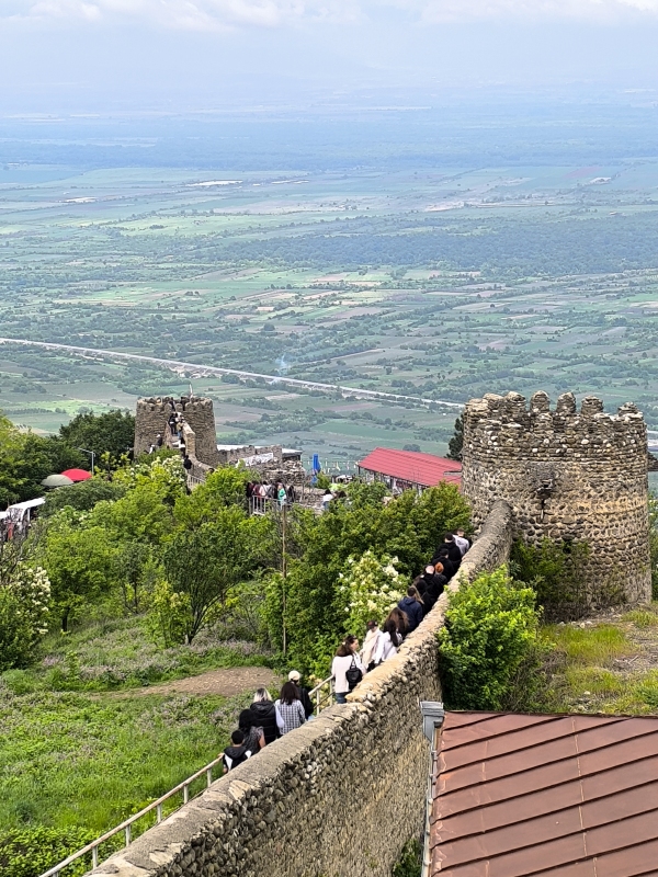 6. dan - Sakartvelo in Hayastan tour Danes sva se podala naprej, iz Batumija preko Kutaisija do Gorija, rojstnega mesta Stalina (Josif Visarionovič Džugašvili), ki je bil rojen leta 1878.Start iz Batumija je bil v popolnem prometnem kaosu, pomeni, da se je bilo potrebno prebijati naprej med avtomobili in paziti, da te kateri ne sname. Zdi se mi, da jim je malo mar, če te bo zadel ali ne. Po kake pol ure je promet stekel in lahko se je začelo uživanje. Kot sva slišala in prebrala, je potrebno paziti na udarne jame, krave in prašiče, ki se prosto pasejo ob cesti, prečkajo cesto itd. Skratka, počasi in nič na silo. V prvi rundi sva potegnila do Kutaisija, naredila tam pavzo, šla malo čez mesto. Prvič na tem potovanju so bile temperature čez 20°C, v mestu tudi 28°C. Midva sva seveda bila fajn oblečena, saj sva štartala pri 14°C.Prvi postanek je bil nekako v predmestju, počutila sva se kot v nekakšnem getu. Skratka, kulturni šok. Nato pa lepo v center, itak prometni kaos, obiskala tržnico, si privoščila sladoled in naprej. Na seznamu so bile še neke točke, ki jih nisva obiskala, ker bi preveč skrenila iz poti glede na uro. V Gruziji se navigirava s pomočjo telefona in aplikacije Here WeGo. Tomtom pač nima kart za Gruzijo in Armenijo, zato ni preostalo drugega. Malo me jeb*, ker nisem navajen tega sistema, niti pogleda, pa še na vrhu tank torbe je, kar je manj pregledno. Če hočem res kaj videti, moram konkretno pogledati dol, tako da iščem trenutke, ko to lahko varno naredim. Kupil sem celo eno vodoodporno torbico za montažo na prečko, vendar mi pokriva preveč vidnega polja pred motorjem in del armature, kar mi je nesprejemljivo. Tako da se zdaj matram s pogledi navzdol. V Gori sva padla kar gladko, razen nekaj del na cesti, nekaj živali na cesti itd. Tega se bo treba navaditi. Hitro sva našla nastanitev, prijazno gostiteljico, ki je kar iz službe prišla predat ključe sobe. Postelj imava kolikor hočeš, tako da se lahko tudi skregava. Kot po navadi, hiter tuš in pešaka v center, do katerega imava par minut hoje. Prvo skočiva na grad, ker ponuja dober razgled. Na poti gor, naju poškropil par kapelj dežja, nič hujšega. Pogledava navzdol in se vrneva v mesto. Sprehodiva se čez Stalinov park, do mestne hše, pa še par ulic levo - desno in v gostilno nekaj pojest. Google mi je danes pomagal najti dobro točko za napolniti želodec. Hrana je bila res izvrstna, vino tudi ni bilo slabo. Lahko bi bilo slajše, ampak je tudi to bilo sprejemljivo. Pod dobrimi vtisi hrane in pijače, sva se počasi odpravila domov. Kar je bilo še zanimivega, vsaj za naju, je recimo plinovod po vasi ali pa po mestu. Preprosto so cevi napeljane ob cesti ene 4m visoko in od tam odvodi k hišam. Vsak odvod ima svoj števec in to je to. Nekatere cevi so še rumene barve, mnogo njih pa je že pobarvala pristna rja. Tukaj v mestu Gori je tudi veliko brajd, ampak res velikih, ki poleti dajejo senco in grozdje. Trte so zelo debele in mogočne. Kupila sva tudi tradicionalno gruzijsko sladico po imenu Čurčhela, nekateri pravijo temu gruzijski snikers. To prodajajo vsepovsod. Mislila sva, da to res morava probati, ker sva že tu. Vzela sva okus maline.Glede na to, da to orehi nanizani na vrvico in nekajkrat pomočeni v grozdni sok z dodatkom moke in sladkorja, da se to lepo posuši in dobi obliko "narebrane sveče", če prepustite domišljiji svojo pot, vas bo zapeljala še kam drugam. Po teksturi in okusu naju ta sladica ni prepričala. Jutri se premakneva malo naprej, pred premikom pa še ogled Muzeja Stalina.