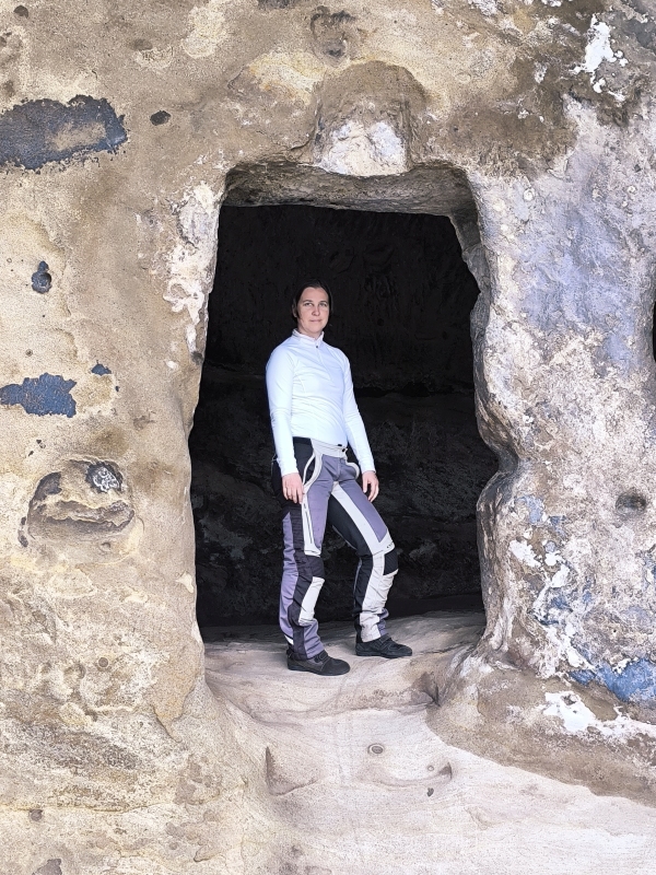 7. dan - Sakartvelo in Hayastan tour Po zajtrku sva pospravila vso prtljago in se odpravila v Stalinov muzej. Muzej odpira vrata ob 10.00, kar je za dopustnike čisto v redu ura. Počakala sva angleško govorečo vodičko, ki nas je popeljala skozi del zgodovine. Muzej je res lepo urejen, pa tudi veliko ljudi od vsepovsod je bilo ob odprtju pred vrati.Po ogledu muzeja, sva se odpravila proti glavnemu mestu Tbilisiju, vmes pa še naredila postanek v Uplistsikhe (starodavno jamsko mesto, vklesano v skalo, 1000 pr. n. št.). Tik pred rampo parkirišča, naju je k sebi povabil domačin, ki je prodajal sveže stisnjen sok. Ker je bil teren mehak, nama je dal tudi dve deščici, da sem ju dal pod tački. Brez bi verjetno motorja padla. Rekel je tudi, da lahko jakne, čelade in airbaga pustiva kar na motorjih, ker je itak on tam. Zaupava in se podava na ogled. Plezava po hribu, si ogledujeva to umetnost, nakar je začelo grmeti, statika je Karmen postavila lase po konci. Tudi jaz sem čutil, da mi jih hoče, samo je bila malo prešvoh. Tudi vlilo se je na hitro, tako da sva bila prav lepo mokra.Ko sva prišla nazaj do motorjev, na motorjih ni bilo opreme. Pomislim, mogoče je pa stric to pospravil, preden se je vlilo. Tip ne odreagira. Midva oba zaprepadena, da sva ostala brez jaken in airbagov. Pol se začne tudi on čuditi kam je to šlo. Malo naju je pustil trpeti, nato pa je povedal, da je dal v avto, da se ne bi zmočilo. Pizdun! Ja, hvaležen sem mu, da je to naredil, po drugi strani pa bi ga malo brcnil v rit. Nato sva vzela pri njem še pomarančni sok, se poslovila in nadaljevala pot proti Tbilisiju. Ker ta ploha ni bila dovolj, sva nekje 40km pred Tbilisijem nadela kondome in nadaljevala pot v dežju. Ko sva prispela v Tbilisi, je dež že ponehal, vendar je bila štiri pasovnica, ki ima ogromno neravnin zalita z vodo. En tip je prav fajn zalil Karmen iz boka ob prehitevanju. Sem že pozabil kaj se je zadrla, vendar ni kazala navdušenja. Teh zadnjih 10km po mestu je bilo napornih. Avti švigajo levo - desno k fliper kuglice, kolona, ne moreš nikamor, polna koncentracija,... Zelo utrujajoče. Za finale sva imela še ornk vzpon do hotela, kjer si ne želiš koga srečati, ker to ne bi bilo navadno speljevanje v hrib.Samo mesto Tbilisi je na prvi vtis kar zanimivo. Lahko rečem, da je zelo živo, veliko turistov. Kar se tiče arhihekture je veliko novogradenj in so tudi predeli, ki izgledajo bolj "bogo".Ogledala sva si Muzej vina, Katedralo Sv. Trojice, prečila sva Most miru in še nekaj ulic starega dela mesta. Muzej vina je res vreden ogleda, saj si ga oglejuješ s kozarcem v roki. Pa ne samo to, tudi vodenje in razlaga je bila odlična. Ugotovila sva, da imamo različne načine pridelave vina.Našla sva tudi restavracijo za večerjo. Lahko rečeva, da sva tukaj jedla najslabše za največ denarja. Zgleda ne moreva imeti vsak dan sreče pri izbiri gostilne.Ob večerji se je ponovno močno vlilo, tako da sva za domov vzela taxi, ker bi bila v nasprotnem primeru premočena do kože. Tudi ta naju je lepo skasiral. Itak, vsi smo hoteli taxi.Jutri nadaljujeva z raziskovanjem mesta.