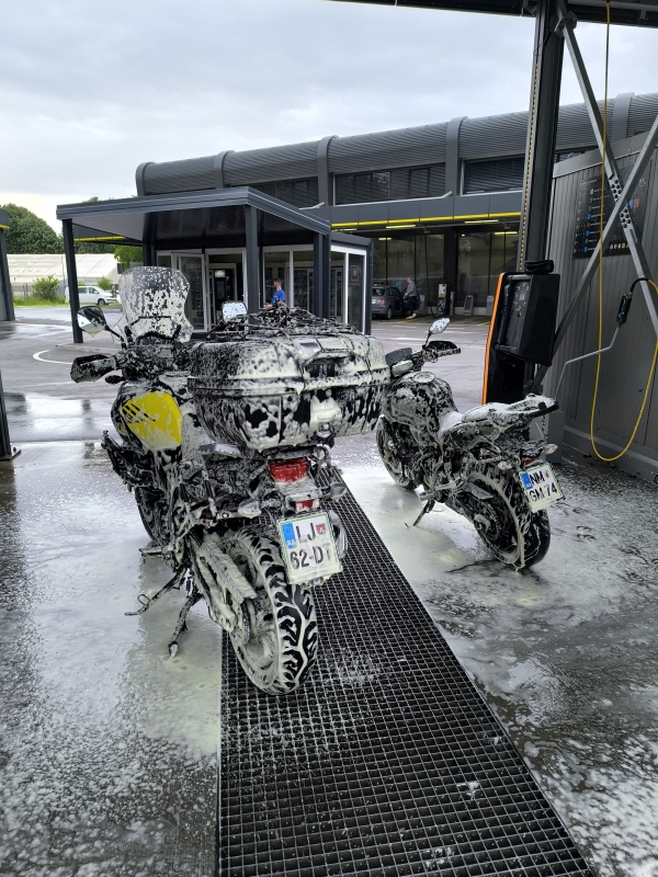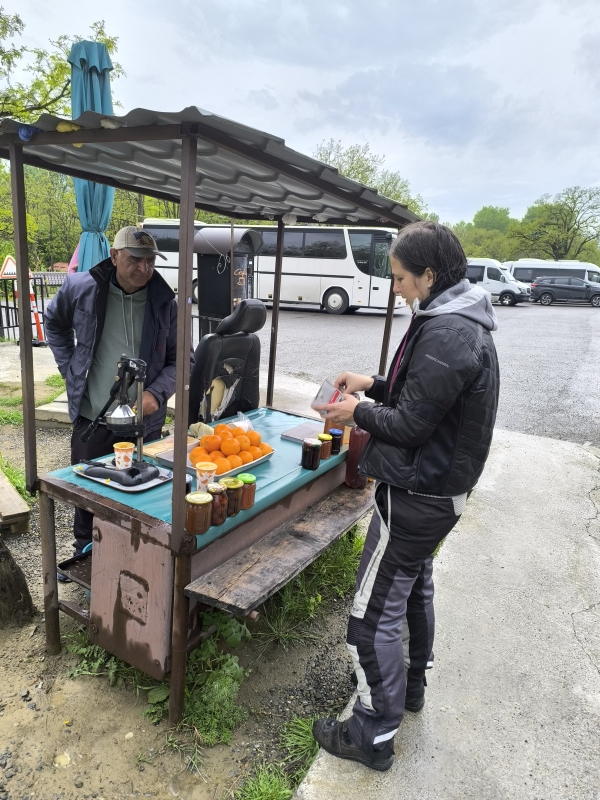 21. dan - Sakartvelo in Hayastan tour (16.5.2025)Dan, ko sledi zadnja etapa do doma. Ko sem se zbudil, sem zunaj slišal kapljice dežja. Dež je bil napovedan, tako da to ni bilo presenečenje.Po zajtrku naju je Atanas zapeljal v garažo do motorjev. Preverjanje tlaka v gumah, dolivanje olja za mazanje verige, oblačenje in slovo.Na začetku je izgledalo, da bo hujše zapustiti mesto, pa vseeno ni bilo tako hudo, kljub dežju in gostejšemu prometu in stavke javnega prometa. Saj veste, delavci bi večjo plačo, vodstvo bi dalo malo manj, pol pride nezadovoljstvo in stavka. Se bo rešilo.Čez BG/SRB mejo sva padla gladko in upala, da v Nišu že posije sonce. Upanje umre zadnje, a sonca ni bilo. Dogovorila sva se, da dokler ne bo sonca, ne stojiva. V postanek naju je prisililo nujno dolivanje goriva, kljub nespremenjenemu vremenu. Nalijeva in se v lokalu na črpalki še malo ogrejeva, saj so se temperature gibale med 7°C - 10°C. Tudi nekaj vode je prišlo v škornje. Preobula sva nogavice, dala preko PVC vrečko in noge nazaj v škornje. Deluje. Niso premočili škornji, voda je pritekla notri od zgoraj.Pri Kragujevcu je res nehalo deževati, imela sva cilj priti do doma, zato samo gas znotraj omejitev proti domu. Ko sva bila mimo Beograda, se je temperatura dvignila na 15°C in sijalo je sonce. Res prijetno in slekla sva dežjake.Domov sva prispela malo po osmi zvečer, po prevoženih 925km, 9 urah efektivne vožnje in 11 urah skupnega časa potovanja. Bila sva kar utrujena. Potovanje je končano, ko se pere prvi pralni stroj perila. Prehitro sproščanje misli na cesti in občutek, da si že doma, je lahko zelo zavajajoč.