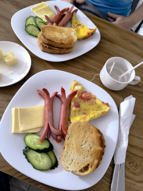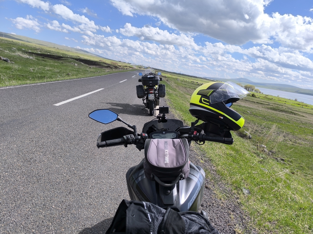 10. dan - Sakartvelo in Hayastan tour Kaj lepšega, ko vstaneš in vidiš, da ne dežuje. To je to. Motivacija za nadaljevanje poti kar naraste. Počakala sva deveto uro za zajtrk. Spraševala sva se le, kaj bova dobila za 20€ skupaj s spanjem. V bistvu ni bilo švoh, glih dovolj za na pot.Ob desetih sva štartala, napojila konjička in gas proti armenski meji. Na začetku malo zgoščenega prometa, nato pa z nekaj prehitevanja tekoče do meje. V eni uri sva bila na meji. No, tu pa nikoli ne veš, kako dolgo boš čakal. Začuda je šlo vse gladko skozi, recimo da sva bila v pol ure v Armeniji. Takoj čez mejo sva kupila še zavarovanje za motorja, saj tukaj naša zelena karta ne velja.Po nekaj kilometrih vožnje opažam, da je promet bistveno bolj prijazen od gruzijskega, ceste lepe, pravi užitek. V nekem trenutku je v sončnem vremenu padlo par kapljic dežja, nič hujšega. Prvo pauzo sva naredila v mestu Vanadzor, kjer sva se malo okrepčila. Ko sva se vozila čez mesto, sva ugotavljala, da ni nekih kafičev. Če želiš kavo, jo dobiš kar na ulici iz avtomata. Končno najdeva en fast food, naročiva piščančji kebab na armenski način. S tem mislim njihove dodatke začimb, omak. Porciji sta bili tako obilni, da nisva vsega pojedla.Pot sva nadaljevala po lepih panoramskih cestah v smeri mesta Sevan in Sevanskeha jezera. Zapeljala sva v center mesta, živa tuga. Zelo pusto. Sprva sva imela v mislih, da bi tam tudi prenočila, ampak... Vesela sva bila, da še nisva česa rezervirala. Na hitro sva se odločila, da greva na jug jezera, od koder jutri nadaljujeva pot. Rezervirala sva sobo, dobila pa kompletno stanovanje. Cena 20€. Zajtrk sva kupila v bližnjem marketu, kjer se streže čez pult, POS terminal je znanstvena fantastika, tudi blagajna. Vse kar imajo je en preprost kalkulator, računa ne dobiš in to je to.Kar moram omeniti, pokrajina je čudovita. Barve so prekrasne. Tudi čez kvaliteto ceste, se vsaj danes ne moreva pritoževati. Govorim o glavnih cestah. Stranske so bolj boge oz. čez kake vasi, tam je potrebno zelo paziti, ker so ogromne luknje.Če pogledam arhitekturo, je drugačna od gruzijske. Vse zgradbe so narejene iz enakega materiala in posledišno so vse enake barve. Na nek način bogo na pogled. Neke statistike govorijo, da imajo dobro gospodarsko rast, tako da se bo tudi to popravilo. Upam. Naj omenim še prve vtise z domačini. Ko sva prispela v kraj, kjer bova prenočila, sva se malo izgubila, pač navigacija ni bila usklajena z objektom. Stojiva za cesto in iščeva kam iti, ko se zaustavi avto in moški vpraša, če potrebujeva pomoč. Izstopijo vsi trije, povedo kam morava iti. Poslovimo se, nakar ugotoviva, da naju spremljajo na lokacijo. Zelo prijazno.Druga izkušnja,... Zvečer se vračava iz sprehoda in restavracije, ko je začelo ponovno bliskati in padati neka sodra. Midva v galop proti nastanitvi, ko se zaustavi en mladenič in naju povabi v avto in zapelje. Pred večerjo sva se odločila, da greva peš tudi do Sevanskega jezera. Google pravi 7 min z motorjem ali 45 min peš. Midva seveda izbereva peš. Ko hodiš, se vprašaš, čemu si to izbral?? Iz zahoda se kopičijo oblaki, grmi in bliska, midva pa še niti do jezera nisva prišla. Itak sva, laufala proti jezeru, hitro pogledala in tek nazaj. Par kapljic naju je dobilo, nič hujšega. V bistvu je hitro nehalo. Skočiva še v restavracijo, ki sem si jo že prej ogledal. Itak je edina tukaj. Prideva, notri, natakarca po armensko, midva po angleško, slovensko,... Ženska nama je predstavila, kaj vse lahko dobiva. Itak nisva razumela. Prosim za meni. Tega nimajo. No, zdaj pa sva v piz**. Pol probamo z Google translate. Ponudba nama je bila zanimiva, dokler Google ni rekel, da dobiva tudi sadje na žaru itd. Takrat sva vedela, da iz te moke ne bo kruha. Pol ona zopet govori kaj imajo in midva sva vmes rekla dva krat DA. Pojma nisva imela, kaj sva naročila, edino za pivo sem bil ziher. Naročila sva tudi kompot, kar se je kasneje izkazalo, da je vrč soka. Pa sva dobila liter soka in dva pira. Pustila nisva nič. Kaj pa sva dobila za pojest, pa je spodaj na slikah. Sevansko jezero leži cca 1900m nad morjem. Zavzema cca 5% Armenije in je eno najvišjih sladkovodnih jezer na svetu, saj ima površino cca 1.240km2.V bistvu imava danes višinske priprave.Danes sva prevozila cca 280km, jutri pa še bolj na jug.