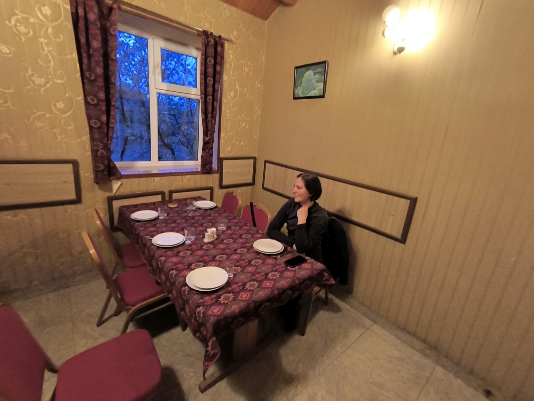 9. dan - Sakartvelo in Hayastan tour Jutro, vlažno jutro. Pogledam čez okno, mokro in prši. To pa je tisti del potovanj, ki nama res ni všeč. Počasi, brez prave motivacije vstaneva, greva na zajtrk, pol pa pride tisti občutek, ko se kar ne bi oblekel. Nekaj podobnega, kot ti nikakor ni za iti v šolo, ker bo prfoksa po vsej verjetnosti spraševala.Vseeno sva se spravila k sebi, natovorila motorja in se podala v vlažno jutro. Lahko rečem, da je bil promet iz Tbilisija redek, v primerjavi z najinim prihodom. Cesta pa je bila prava drsalnica. Daš noge dol pri semaforju in moraš paziti, da ne zdrsneš in padeš.Danes sva se napotila na vzhod, ker je vremenska prognoza bila dokaj ugodna. Na sever ni za iti, ker na območjih, kamor bi midva recimo šla, je bila danes velika verjetnost sneženja. Torej, napotila sva se čez Telavi v smeri Sighnaghi. To bo najina najbolj vzhodna točka potovanja. Med Tbilisijem in Telavijem sva prečila prelaz Gombori, ki se vzpne na cca 1600m in je bil danes pokrit z oblakom. Saj ni bilo neke sile, pač instrumentalna vožnja. Ko sva se začela spuščati, sva bila tudi dokaj hitro iz oblaka in svet je postal lepši.V Telaviju sva naredila kratek postanek, nato pa na današnji cilj. Vreme se je izboljševalo, vedno bolj svetlo je bilo. Ko sva prišla v Sighnaghi, je bilo že prav lepo vreme. Sprehodila sva se po mestu, pomalicala nato sva se odprava po južni strani nazaj v smeri juga Tbilisija, ker nama je to ugodna lokacija za jutrišnje nadaljevanje poti. Na robu mesta sva dobila prenočišče z zajtrkom za 20€. Več kot odlično. Pot nazaj do Tbilisija je bila suha in umirjena, dokler navigacija ni šla po svoje, oz. sva se malo vrtela sem ter tja. Nato je dodala še Karmen svoj prispevek orientiranja, jaz pa sem razmišljal o pomirjevalih. Že kar tradicionalno ima na vsakem potovanju en svoj navigacijski vložek, ko prekaša navigacijo in še kaj.Ko sva se vrtela in iskala pravo pot, sem skoraj zapeljal na potopne nože za prebijanje pnevmatik. V zadnjem trenutku sem jih zagledal in zaviranje na polno je rešilo situacijo. Hvala bogu je bila hitrost zelo nizka, saj so bili noži montirani na makedamu. Tam sem se znašel, ko sem šel izvidovat makedamsko cesto, če se bo dalo priključiti na glavno cesto. Karmen je čakala na varnem. Zvečer sva se sprehodila po okolici hotela in opazovala življenje domačinov. Lahko rečem, da je res skromno življenje.Tudi današnja vožnja po vaseh je bila zanimiva in tudi na nek način za zamisliti. Ko gledam te ljudi, ki na nek način nimajo ničesar oz zelo malo, pa so vseeno nasmejani. Torej, kaj človek potrebuje? So to materialne dobrine? Je to občutek varnosti? Ljubezen? Pa saj imam tudi te odgovore, pa vendar sem mešanih občutkov.Sem malo posnel, kako to izgleda. Verjemite, da so še mnogo slabši prizori kot na teh posnetkih.Vem, da so globoke stiske tudi v naši domovini, ne govorim samo o revščini tukaj. Vseeno pa mislim, da se na nek način doma nimamo kaj pritoževati, vsaj velika večina prebivalstva ne. Kaj je prav, kaj ni prav, kaj je dobro ali slabo, to razmišljanje pa danes prepuščam vam.
