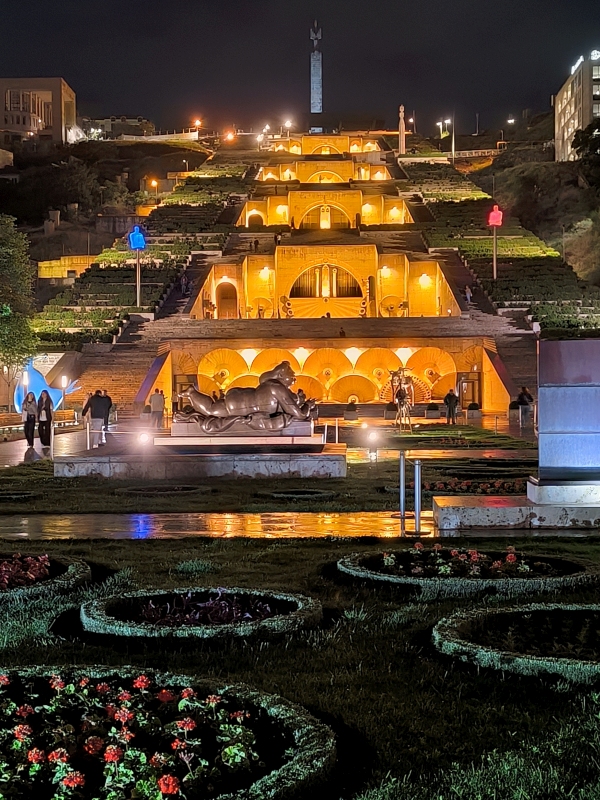 12. dan - Sakartvelo in Hayastan tour Danes sva ostala kar v Jerevanu, saj je prestolnica Armenije in je še veliko stvari za pogledati.Prvo sva se odpravila v Muzej konjaka Ararat. Seveda sva šla peš, v malo manj kot pol ure sva bila na cilju. Že ko vstopiš na recepcijo za nakup vstopnic, te prevzamejo arome konjaka. Želiva kupiti vstopnice, nato pa šok. Sledilo je vprašanje: "Imate rezervirane karte? " Seveda ne. Pol pa se začne kalvarija, kdaj lahko prideva itd. Za trenutek sem že pomislil, da bo to vse od konjaka za danes. Nato naju potolaži, da je ANG skupina čez 15 min in če kdo ne pride, lahko greva midva. V tistem trenutku sva se odločila, da bova šla s to skupino na ogled. Tako je tudi bilo. Temu se reče moč misli, pa ne bom zdaj o tem.Prijazna vodička Lia nas je popeljala skozi zgodovino, trenutno stanje in na koncu je sledila degustacija 3 in 7 let starega konjaka. Zanimiva izkušnja, saj je Lia zelo lepo zaokrožila to zgodbo. Naslednja točka je bila ogled spomenika Cicerkaberd, ki je posvečen spominu na genocid nad Armenci leta 1915.Genocid "bi naj" zagrešili Turki, ki tega ne priznavajo, umrlo pa je 1.5 milijona Armencev. Cilj je bil izbrisati armensko prisotnost iz Anatolije. Mednarodna skupnost te dogodke priznava kot genocid.Spomenik je vreden ogleda, težko vam opisem občutke, ko vidiš odrasle in otroke, da prinašajo rože. Spomenik predstavlja glavno mesto spomina in narodne identitete Armencev. Zopet malo sprehoda in nato z metrojem v center. Metro ima vsega 4 postaje. Za vožnjo v razdalji treh postaj sva plačala za oba cca 75 everskih centov.Izstopila sva na Trgu republike, ga pogledala še v dnevni svetlobi, nato se ponovno napotila proti kaskadam in zopet po stopnicah na vrh. Danes še višje, tako da sva opazila tudi gradbeno jamo, saj Kaskade še niso dokončane. Projekt oz. gradnja se je ustavila leta 1988 zaradi potresa in tudi zaradi razpada Sovjetske zveze. Graditi se je začela leta 1971. Nato pa še malo naokrog po mestu, vmes je bila še malca, sladkanje, hidracija itd. Zvečer pa Turška savna v hotelu in relaksacija.