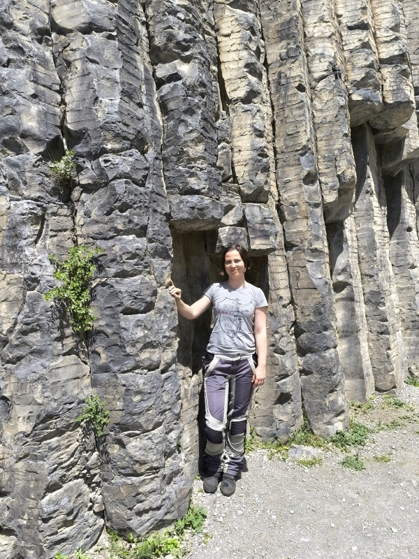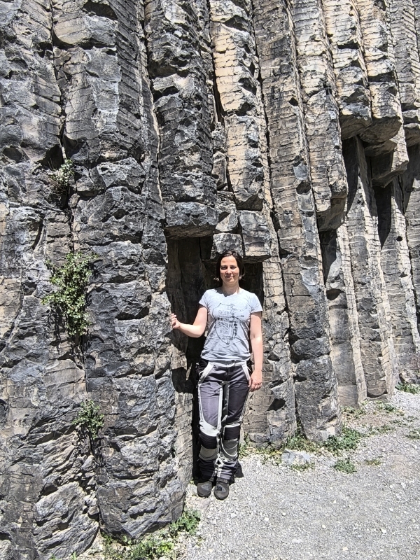 13. dan - Sakartvelo in Hayastan tour Danes sva ležerno vstala, nič na silo, ker je včeraj Karmen šla malo s počutjem navzdol. Zjutraj sem samo upal, da bo boljše in je tudi bila. Ni bila 100%, vendar boljše kot včeraj.Po jutranji rutini sva se odpravila proti prvemu cilju, to je Symphony of Stones. Takšno je življenje, če imaš zraven sebe geologijo. Skratka, tu nisem imel pravice glasovanja o lokaciji.Ko nastavim telefon (trenutna navigacija), se podava na pot v prometno kaotičen Jerevan. Zadeva se je zelo hitro zakomplicirala. Po navigaciji bi morala levo, fizično to ne gre, ker je enosmerna cesta, nadaljuješ kamor lahko. In pol te vrti po mestu, pripelje na isto lokacijo itd. V vsem prometnem kaosu v kombinaciji z navigacijo, sva potrebovala iz mesta več kot eno uro. Kugla je šajnala, vroče za znoret, nato pa se še motor shladi med tvoje mednožje. Samo upaš, da ti jajca ne zakrknejo. Tudi preklinjala sva, hupo tukaj kar pogosto uporabljam. Če misliš, da bo šlo kaj skozi po nekih reglcih, to ne gre. Varnostne razdalje ni nobene, vse se rine iz vseh strani na centimetre. Kar je bilo v tem dobro, Karmen je pozabila na slabo počutje, ker preprosto ne moreš razmišljati druga, kot kako se izvleči iz tega brez poškodb.Ko sva že mislila,, da sva na konju, sva naletela še na rekonstrukcijo ceste, kjer so glih nasuli gramoz in je bil sveže razgrnjen z gredarjem. Komaj sva zlezla čez.Do Symphony of Stones sva prišla konkretno zdelana in žejna.Pogledala sva to čudo narave in tuhtala kako se izogniti Jerevana, ker tja si res nisva več želela. Našla sva pot na googlu, nato jo po etapah vnašala v aplikacijo za navigiranje.Za cilj sva si zadala mesto Gyumri. Nisva vedela, kaj pričakovati v tem mestu, pa vendar, če ne druga, bo za prenočiti.Ko sva šla v mesto, sva bila pomirjena. Čisto druga zgodba kot Jerevan. Od prometa, trušča,... Res prijetno in umirjeno mesto. Malo sva se sprehodila po mestu, šla pogledat še spomenik Matere Armenije in Črni grad. Zopet peš, prsti na nogah trpijo. S seboj sva vzela Hoke (kdo je že rekel, da so to najboljše superge za hojo?), ki obema delajo že več dni težave. Porabila sva že kar nekaj flajštrov.Ko sva začela pešačiti nazaj sem rekel, ziher bo kje kak taxi. Hodiva, od zadaj slišim avto in rečem, to bo taxi. Avto pripelje vzporedno z nama, zagledam taxi oznako, pomaham in ta se ustavi. Na telefonu pokažem sliko, kam bi rada prišla. Stric naju je zapeljal na želeno lokacijo, vzel 1.20€ in vsi smo bili srečni. Poiskala sva še eno gostilnico za večerjo in dan se je prijetno zaključil.Ko sva prišla do hotela, sva videla receptorja in še neke mladeniče, ki nekaj kažejo proti motorjema. Čez nekaj časa pokliče receptor v sobo, če sta motorja najina. Po potrditvi reče, da bo poklical nazaj. Ni mi dalo miru, vzel sem oboje ključe in šel dol. Vprašam, v čem je težava? Težava je bila, ker sta motorja stala izven vidnosti nadzorne kamere. Prosil me je, če lahko motorja prestaviva izza hotela, kjer bo bolj varno in bosta motorja pod kamero. Itak, samo da bo vse ok. Prestaviva motorja, receptor srečen, varnostnik srečen, midva pa tudi. Že vedo kako in kaj, saj je to njihovo mesto. Jutri nadaljujeva pot v Gruzijo. Kje bo cilj, še ne veva.