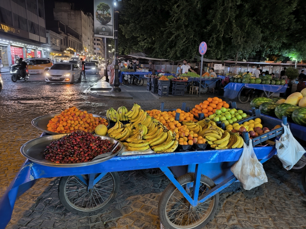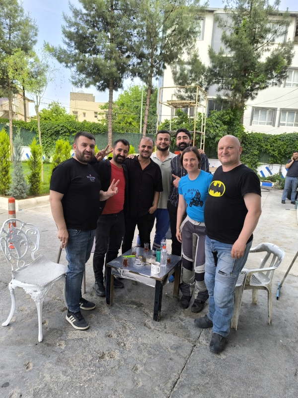 16. dan - Sakartvelo in Hayastan tour Noč v mestu Van ni bila nič kaj mirna. Hotel ob eni bolj glavnih ulic ni ponujal popolnega miru. Sredi noči so s tovornjaki pobirali smeti, pri vzvratni vožnji je piskalo in piskalo. Meni se zdi, da so celo noč manevrirali okoli hotela.Po dobrem zajtrku sva se odpravila v smeri mesta Batman. Pač, če že imam majico s tem motivom, je potrebno videti še mesto.Vozila sva ob jezeru Van, Karmen je namakala roke v vodo, mene to ni mikalo. Tudi me ne mika, da bi namakal svoje luksozno telo v to vodo.V mesto Batman sva se pripeljala pri 37°C. To je bil šok za naju, saj sva do danes bila kar oblečena na motorjih. To območje je polno nafte, tako ima Turčija tukaj glavna črpališča in rafinerijo. Mesto, ki ima cca 460.000 prebivalcev, od tega več kot polovico Kurdov. Na bencinski črpalki sva jih tudi spoznala. S ponosom so povedali da so Kurdi, da je to območje Kurdistan. Ne vem, kaj bi rekel na to turški predsednik. Bili so zelo gostoljubni. Ko sva nalila gorivo, so nama takoj do motorja prinesli dva stola, mizico, ponudili čaj itd. Pač, ne moreš kar iti naprej. Vseeno sva se poslovila, ker sva šla se naprej do mesta Hasankeyf ob reki Tigris. Tam so naredili en ogromen jez in posledično poplavili del mesta. Ljudi so preselili višje na hrib in jim zgradili zelo lepe hiške.Reka Tigris očara, saj se mogočno vije po dolini in zajame te tudi zgodoviski pomen teh krajev.Tam je bil tudi trenutek, da se odločiva do kod sploh danes greva, posledično je bilo potrebno rezervirati tudi prenočišče. Odločila sva se za malo manj kot dve uri vožnje do mesta Diyarbakir.Hotel je v centru, pomeni je bil dostop do hotela malo kaotičen, parkirala sva direkt pred vrati recepcije.Sprehod po mestu je bil dinamičen, saj je to bolj tradicionalno turško mesto, zelo malo turistov. Je toliko tradicionalno, da tudi danes nisem niti videl, niti okusil piva. Tudi to mesto je v glavnem poseljeno s Kurdi. Za zaključek bom napisal še nekaj o tukajšnjih ljudeh. Vsi so zelo prijazni, gostoljubni in ustrežljivi, mogoče že malo preveč za najin okus. Recimo,... Postanek na eni od bencinski črpalk. Naredila sva postanek, se okrepčala itd. Ko sva se spravljala na motor, je predvidevam da lastnik črpalke šel v hladilnik po dve hladni plastenki vode in nama ju dal za popotnico.Druga zgodba so Kurdi, o katerih sem že pisal zgoraj.In tudi tukaj v mestu, se ljudje kar zaklepetajo s teboj. Ali pa te vprašajo, od kod sta? Itak vidijo, da nisva iz tega konca sveta.Jutri bova probala iti na pot malo bolj zgodaj, ker se počasi spuščava v tranzit proti domu.