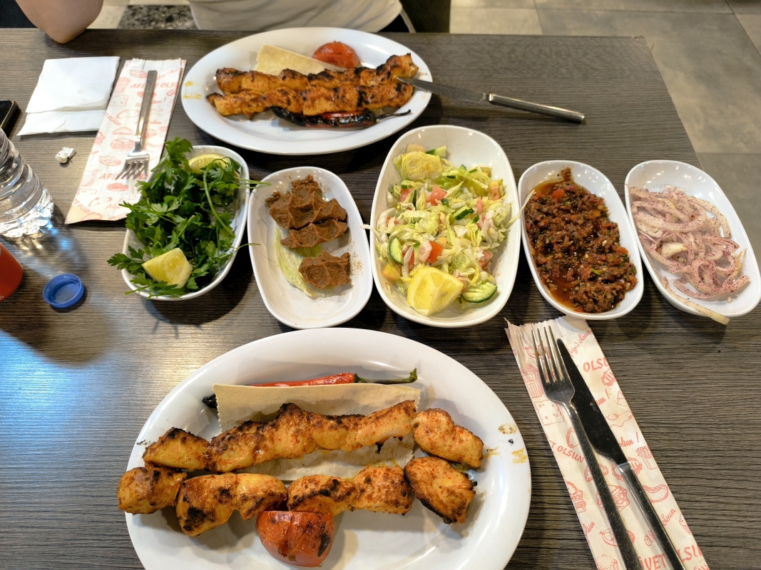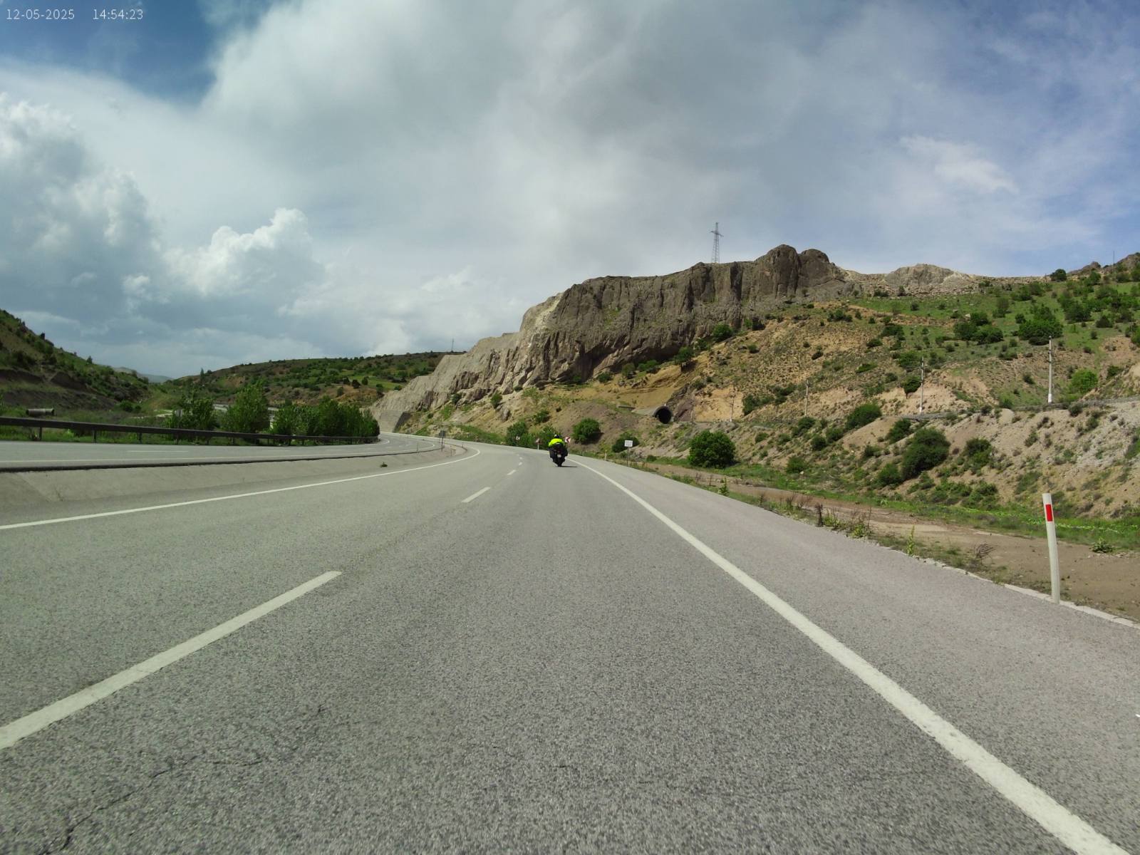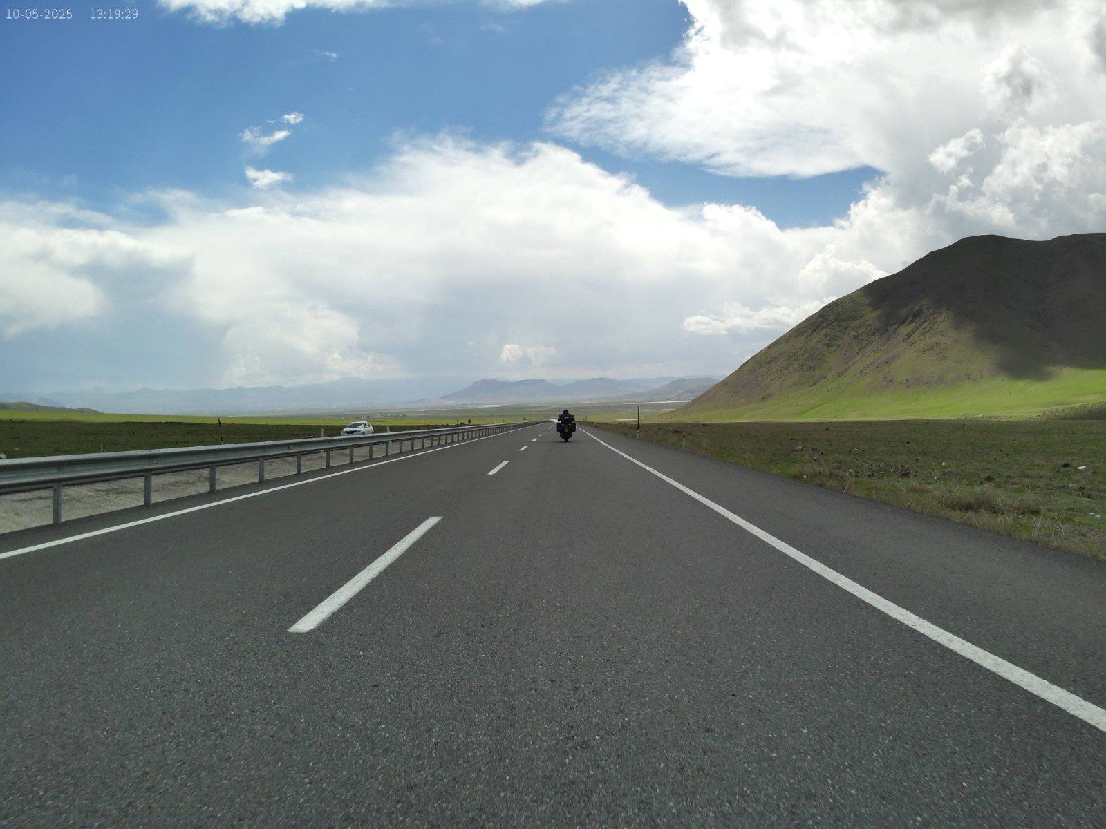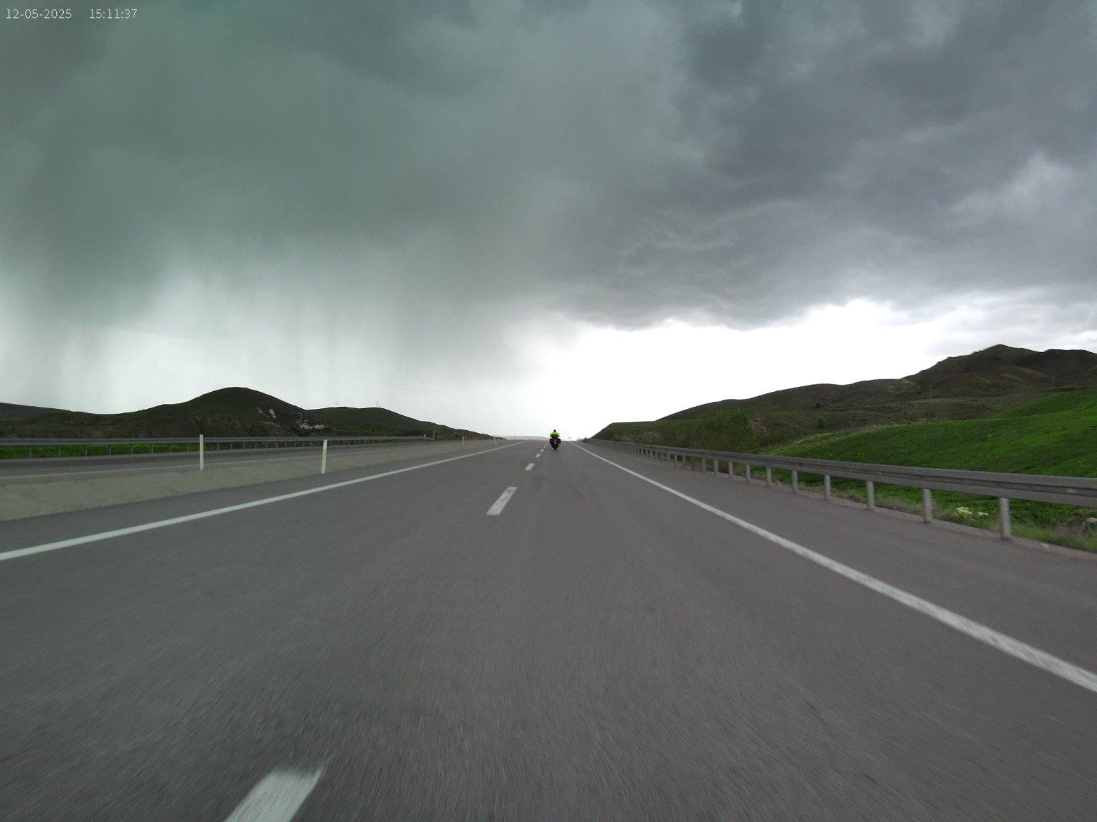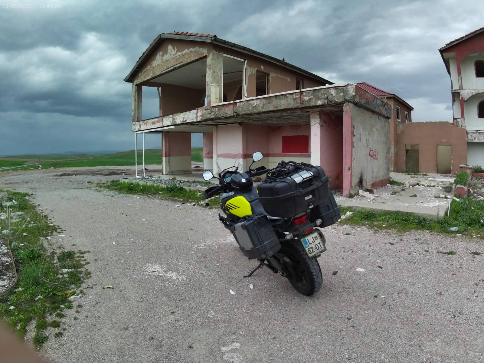 17. dan - Sakartvelo in Hayastan tour Po nekako čudno prespani noči, sva se odpravila na zajtrk. Na mizo so nama prinesli veliko, ob tem pa se ti poraja vprašanje, a bom šel lačen od mize? Danes sva štartala v jutranjih 27°C, predvsem se je to poznalo pri zapuščanju mesta, kjer je ogromno semaforjev in v glavnem svetijo rdeče.Ko sva zopet nabrala malo nadmorske višine, je tudi temperatura padla in vožnja je bila prijetna. Hitro po dvanajsti uri je začelo vreme kazati svojo moč. Obdarilo naju je z dežjem in vetrom. Skočiva v dežjake in ne popuščava. Hitro sva bila čez in zopet na soncu. Slečeva dežjaka, čez dvajset minut pa ponovno oblačenje. Bljak. Tokrat je bilo malo bolj pestro, zgleda je bilo vmes še malo toče, ker je kar bolelo, po rokah in nogah. Skriti se nimaš kam, stati pod milim nebom, pa tudi nima smisla.Kljub temu, da naju je nekako 2x opralo, sva se kar dobro izogibala glavnim nalivom. Kar par krat sva stala in taktizirala ali še malo počakati ali iti naprej. Sva imela kar srečo. Na višini 1800 m.n.v. se vremensko kar dogaja. Nekako sva imela načrt priti do Sivasa, vsaj do sem. Imela sva še voljo in moč, za dodatnih 100 km, vendar na tej relaciji ni bilo razpoložljivih prenočišč. Pa sva ostala kar tukaj.Jutri imava veliko možnost, da bova štartala v dež. Ampak bolj kot bova šla na zahod, lepše bo vreme.